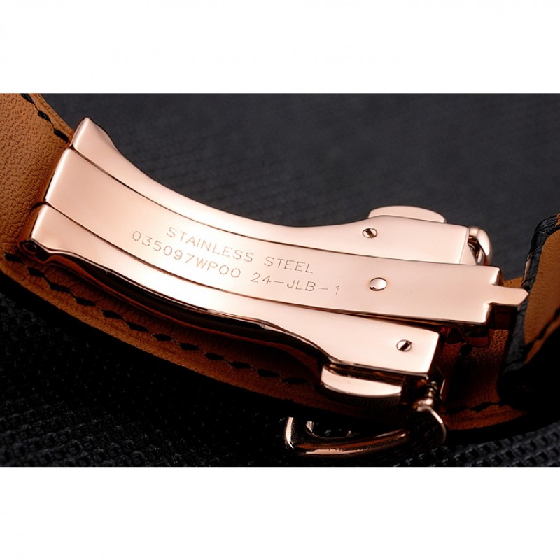 Bracelet:bracelet en cuir de crocodile noir avec Hermes gravé 18k or rose plaqué push-presse fermoir-boucle crochet