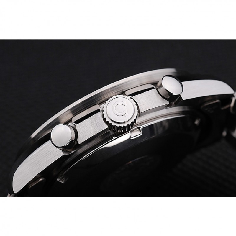 Couronne :couronne en acier inoxydable cutwork poli avec logo Omega et deux couronnes supplémentaires, une de chaque côté de celui-ci