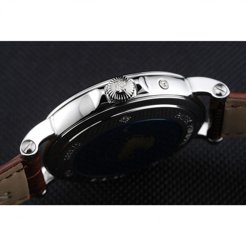 Bracelet:Patek Philippe et la sangle de chaleur en crocodile brun gaufré logo avec l’acier inoxydable poli fermoir crochet-boucle