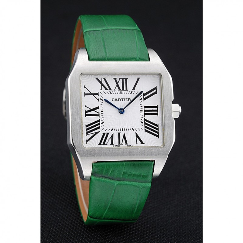 Bracelet:chaleur Cartier en relief bracelet en cuir de crocodile vert avec fold en acier inoxydable poli fermoir