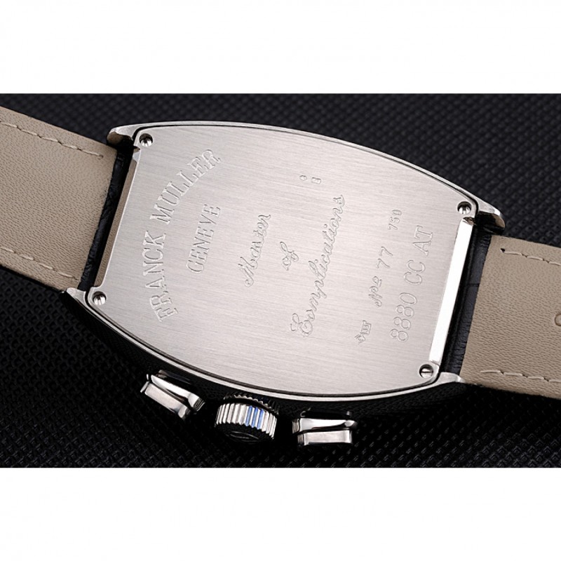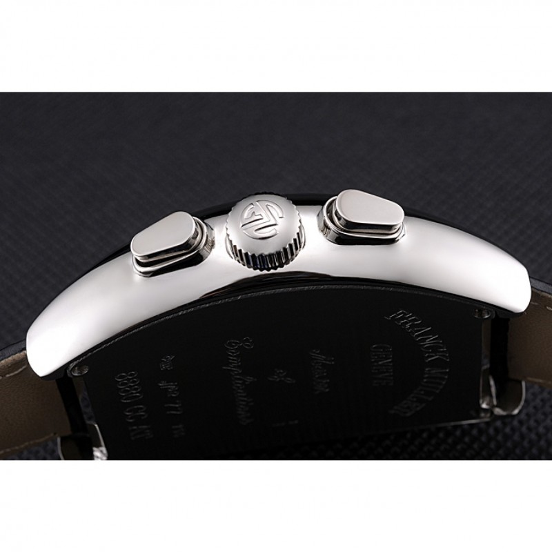 Couronne:couronne en acier inoxydable cutwork brossé avec logo Franck Muller et une couronne bouton-poussoir allongé de chaque côté de celui-ci