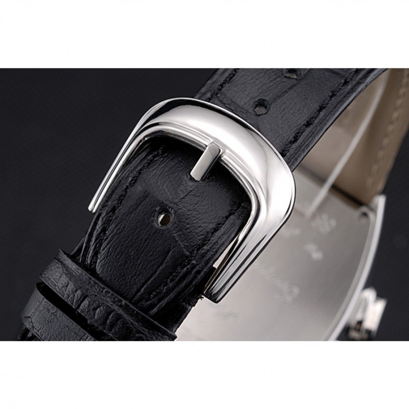 Bracelet:Franck Muller Geneve chaleur bracelet en cuir crocodile noir en relief avec fermoir crochet-boucle en acier inoxydable brossé