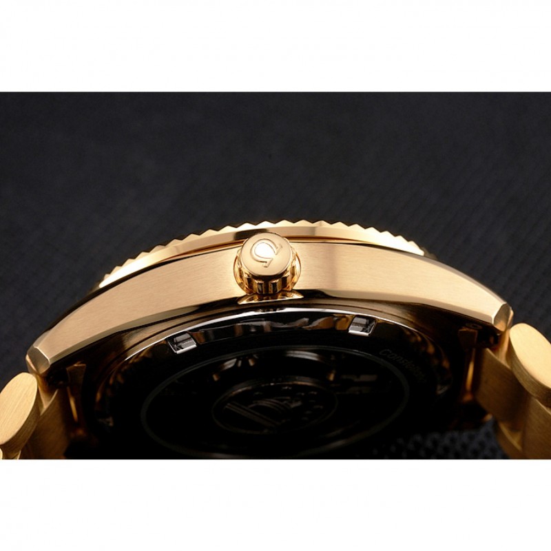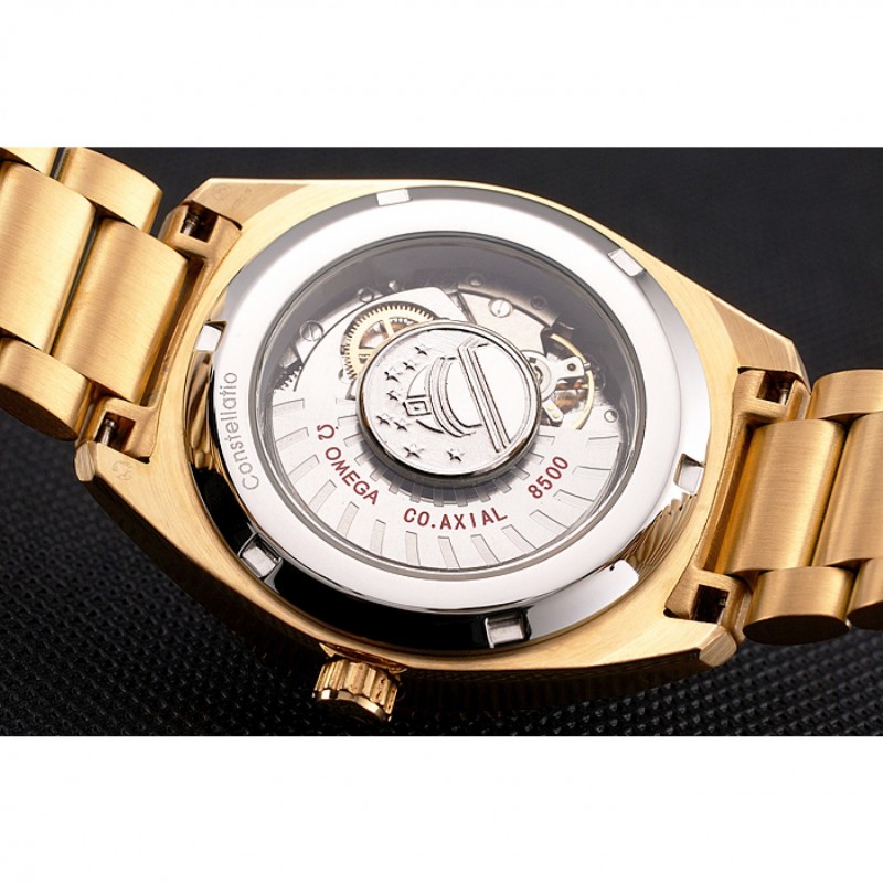 Retour:transparent mécanique révélant retour avec un acier inoxydable poli enfichable jante et inscription Omega
