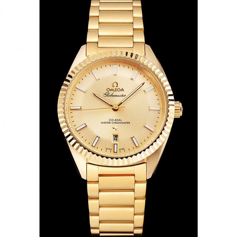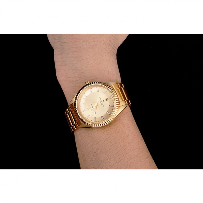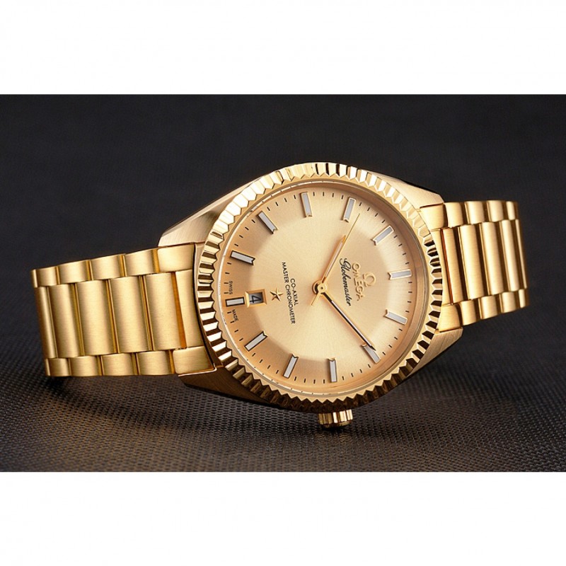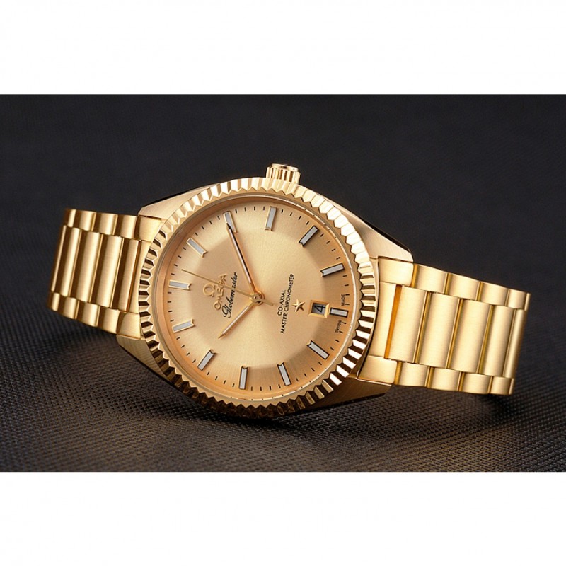 Bracelet:18k plaqué or jaune bracelet lien avec Omega et le logo inscrit fermoir à bouton-sortie en acier inoxydable poli