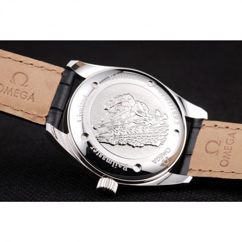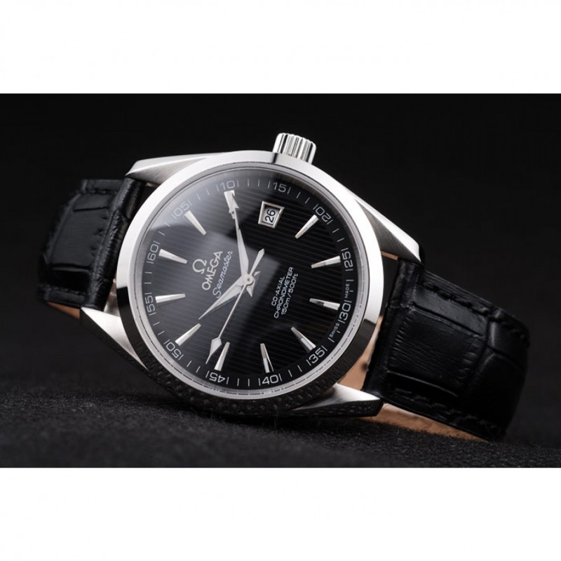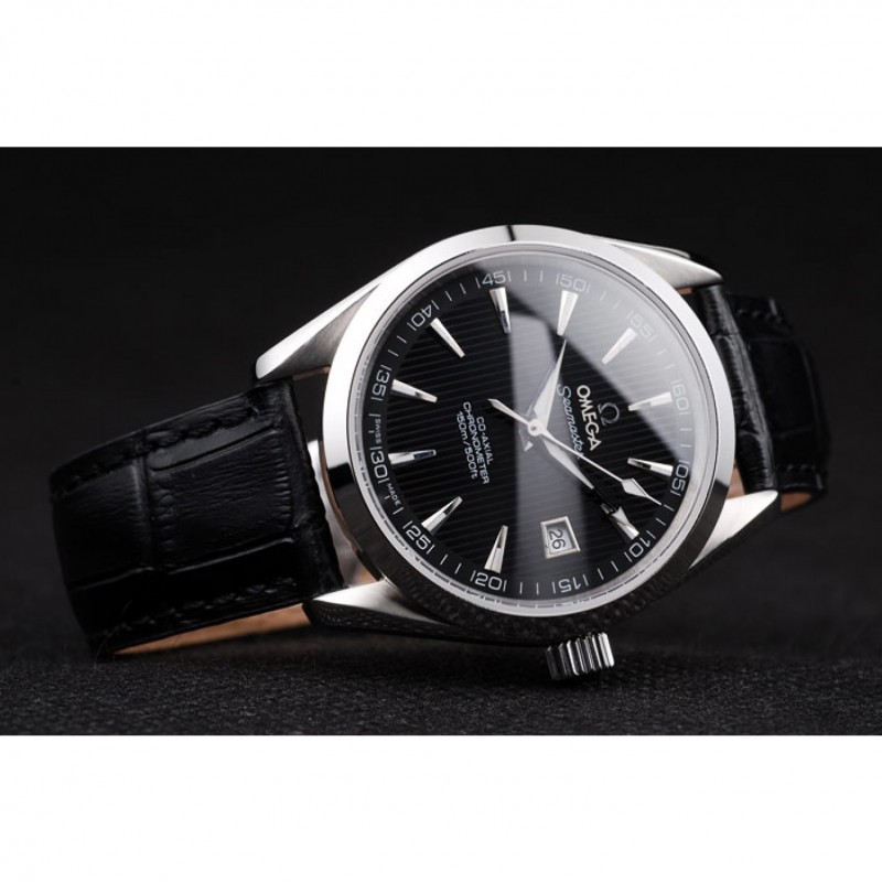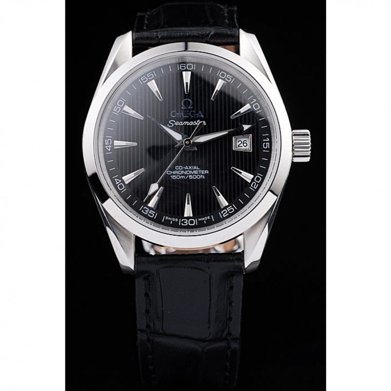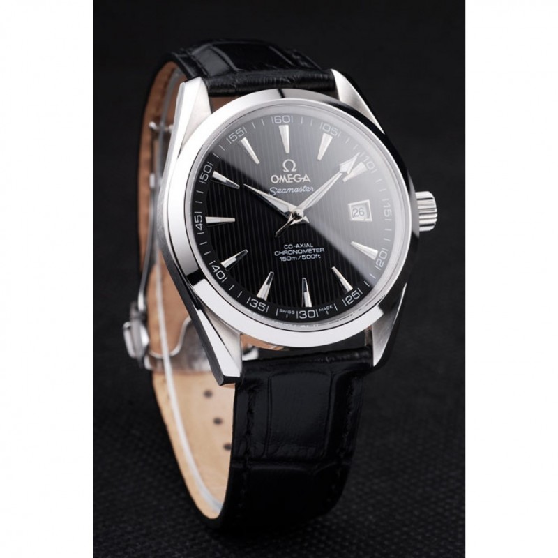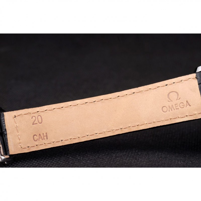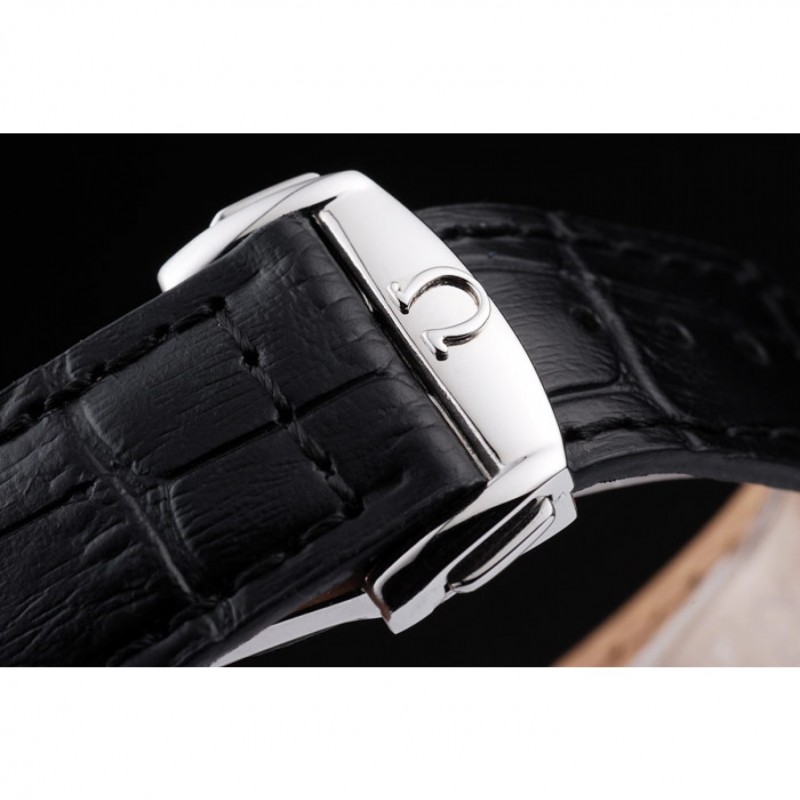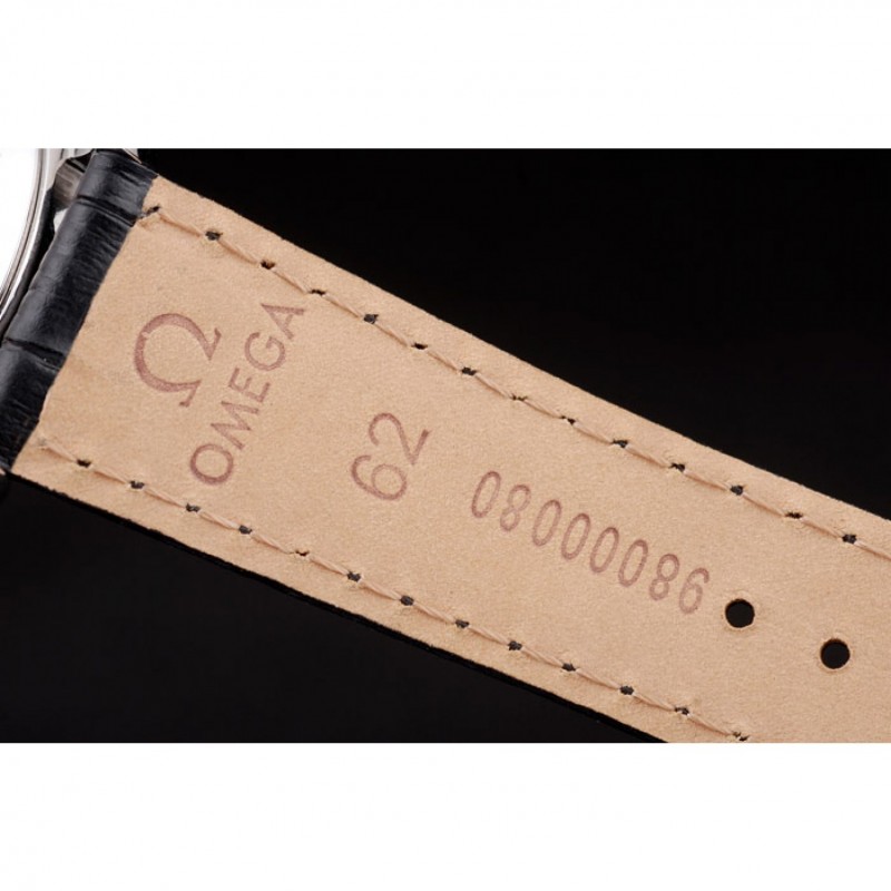 Bracelet:bracelet en cuir de crocodile noir avec timbre Omega en relief la chaleur et l’acier inoxydable plier en boucle avec le logo Omega sur