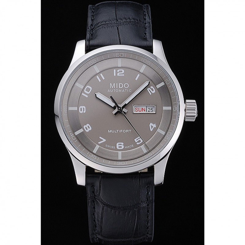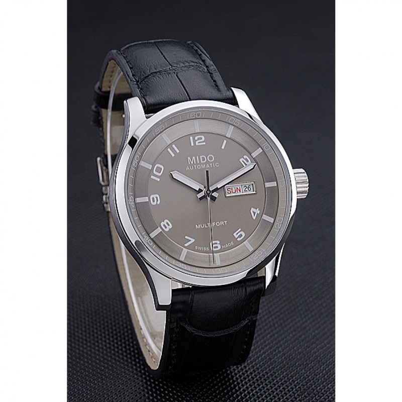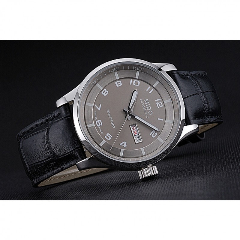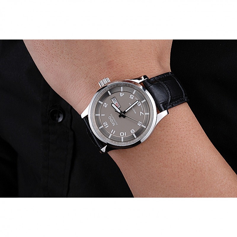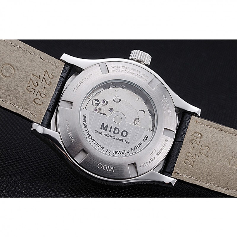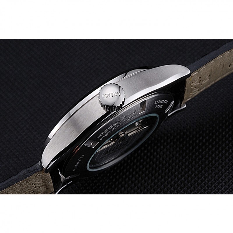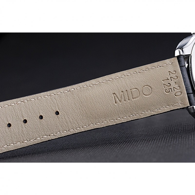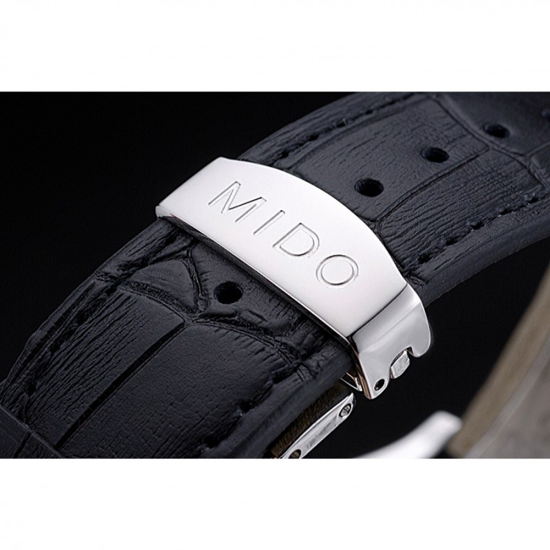 Bracelet:Mido chaleur bracelet en cuir crocodile noir en relief avec Mido gravé fermoir à crochet en acier inoxydable poli