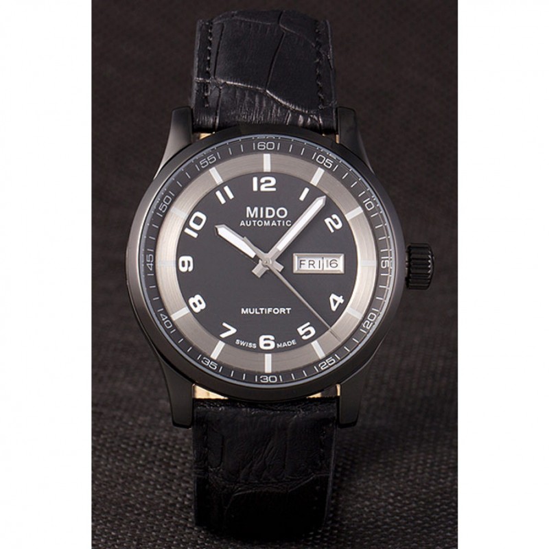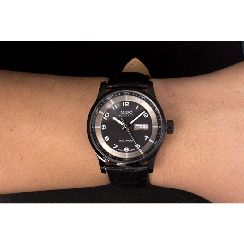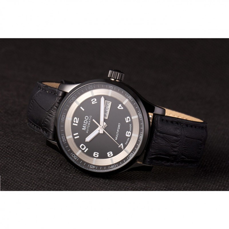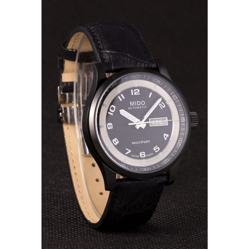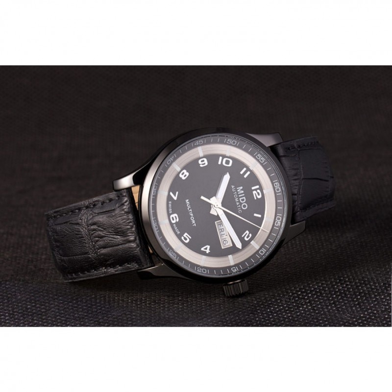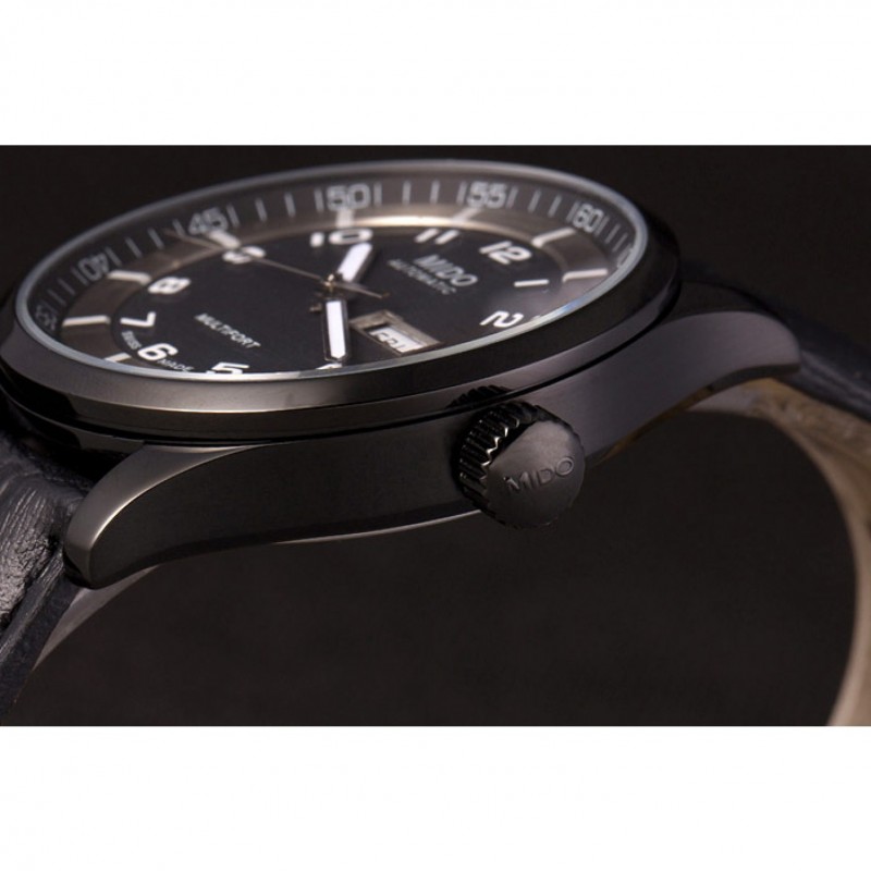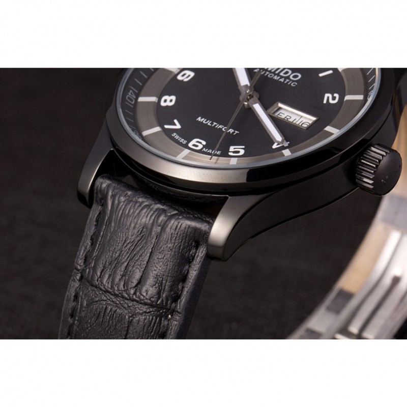 Bracelet:chaleur MIDO bracelet en cuir crocodile noir en relief avec MIDO gravé fermoir crochet-boucle placage ionique
