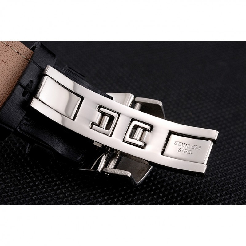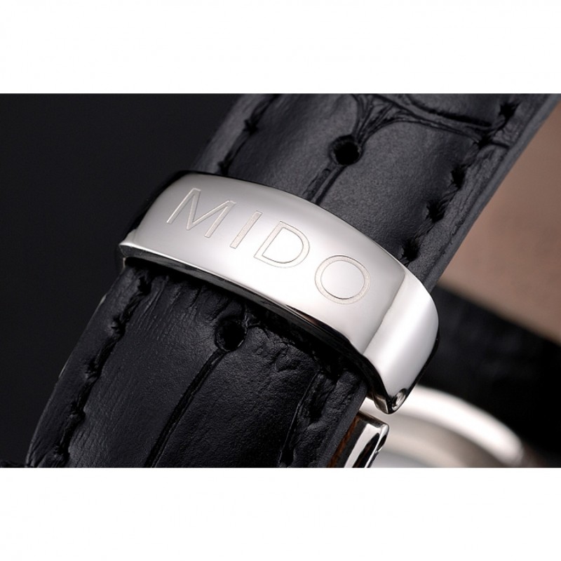 Bracelet:Mido chaleur bracelet en cuir crocodile noir en relief avec Mido gravé fermoir à crochet en acier inoxydable poli