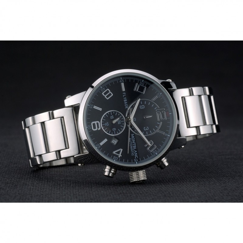Retour:composant logiciel enfichable à l’arrière en acier inoxydable poli avec le centre transparent et la gravure MontBlanc et logo