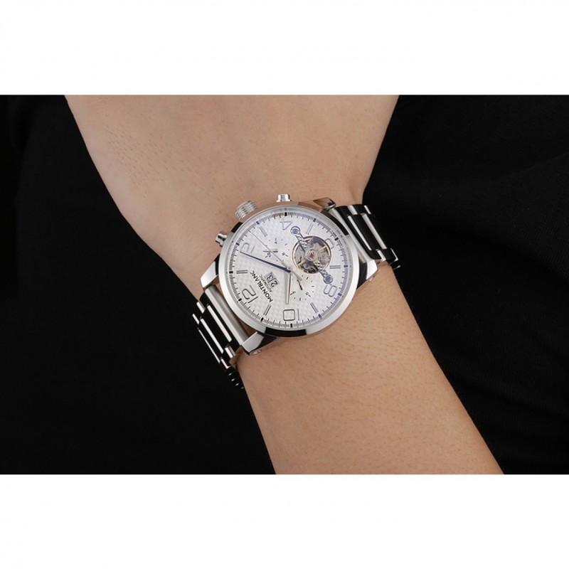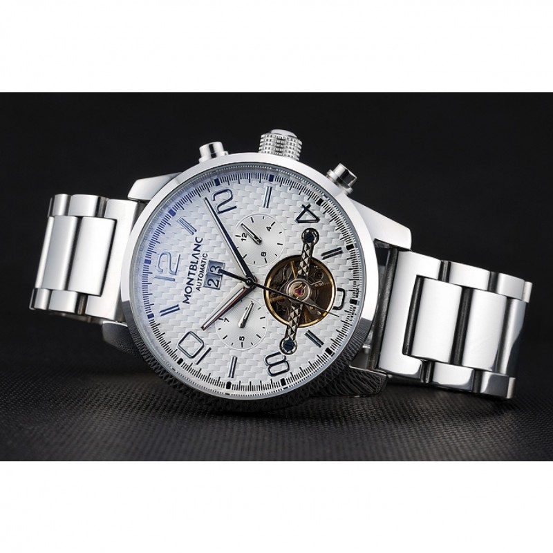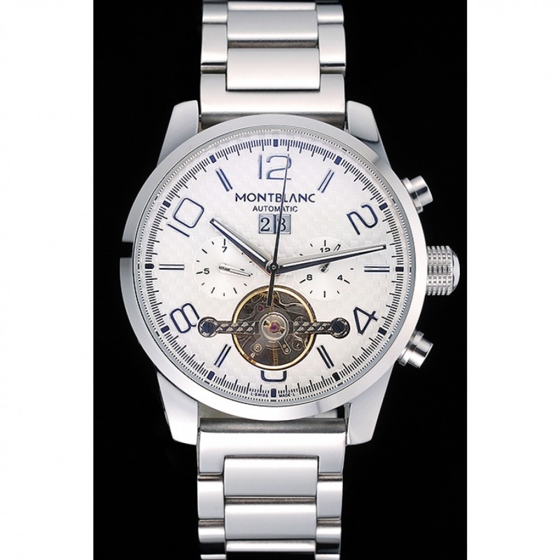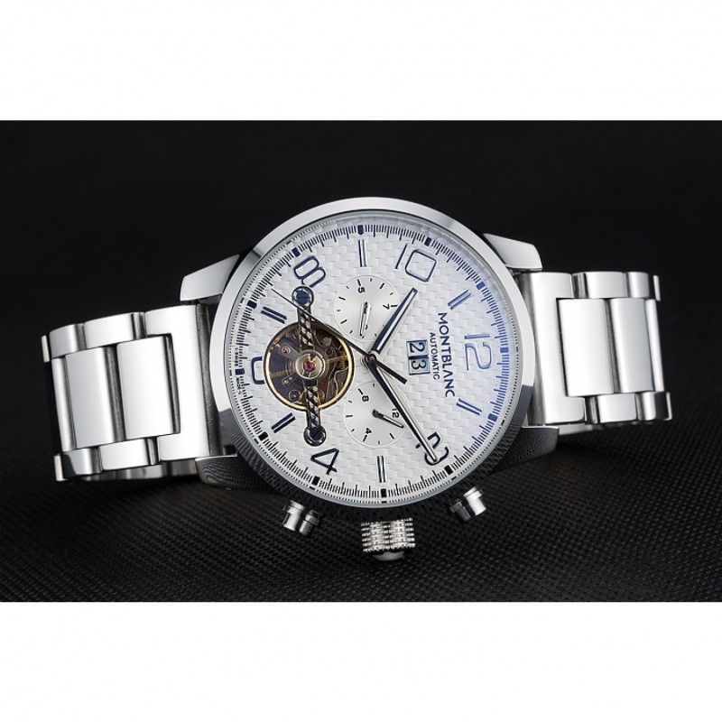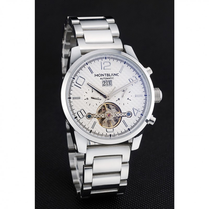Couronne:Couronne acier inoxydable poli cutwork avec le logo MontBlanc et deux boutons en acier inoxydable poli couronnes de boutons de chaque côté de celui-ci