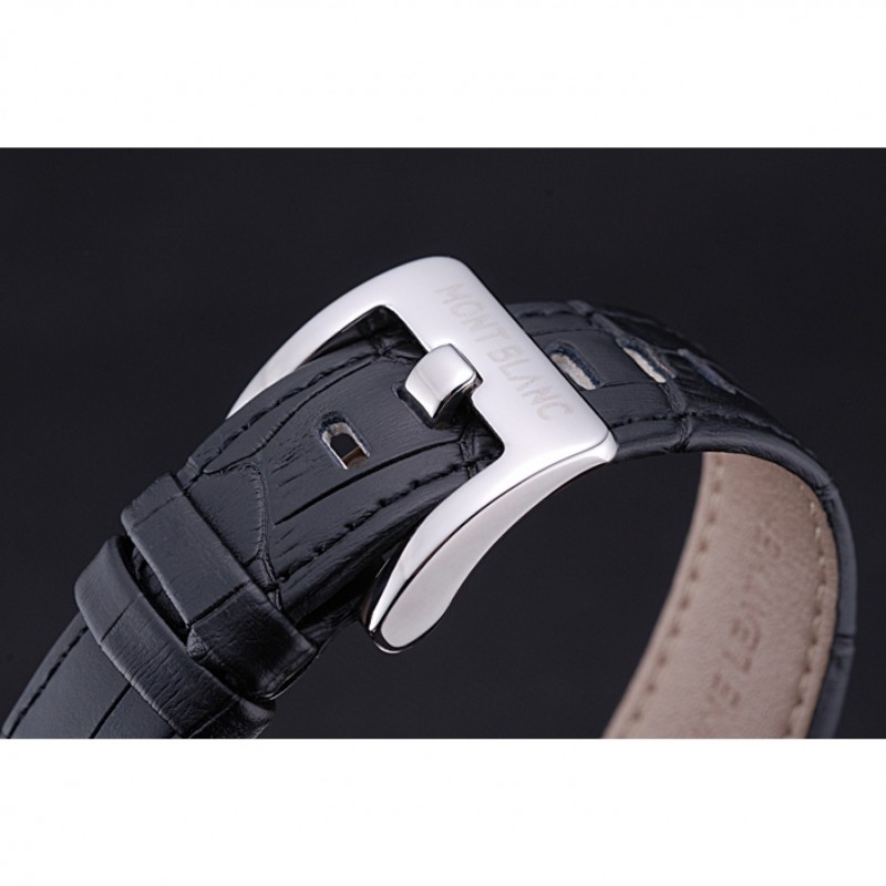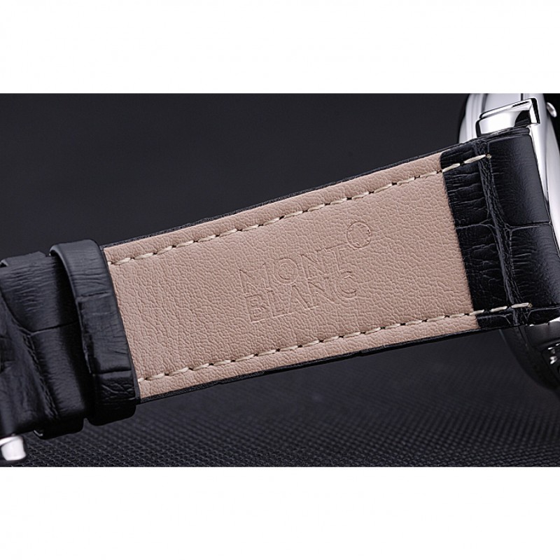 Bracelet:MontBlanc chaleur en relief bracelet en cuir crocodile noir avec logo MontBlanc acier inoxydable gravé poli crochet caché fermoir