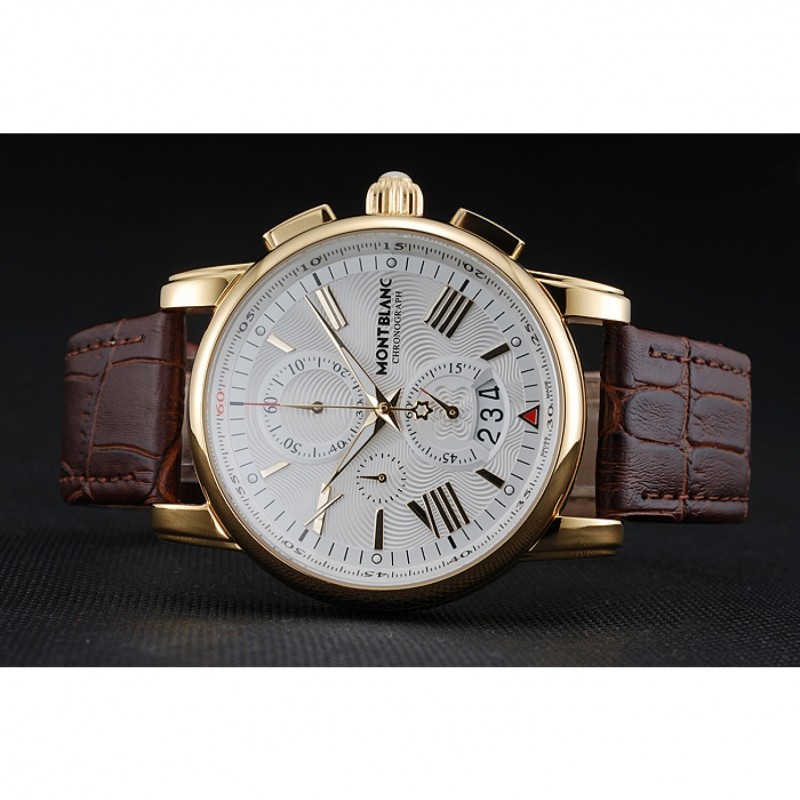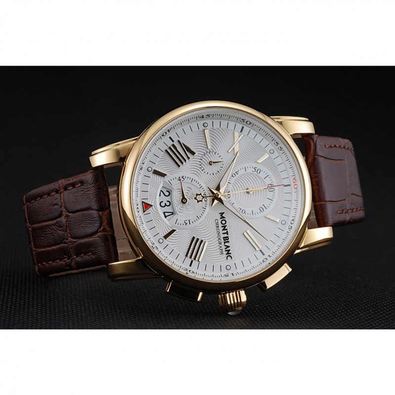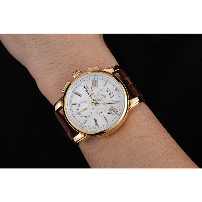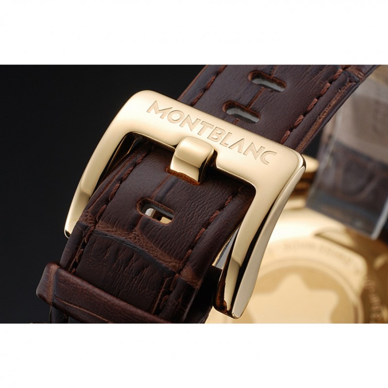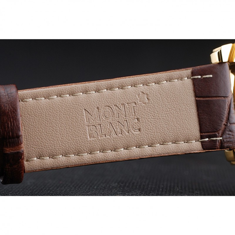 Bracelet:chaleur Montblanc bracelet en cuir de crocodile brun gravé Montblanc gravé 18k plaqué or jaune fermoir crochet-boucle