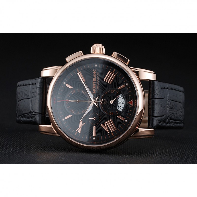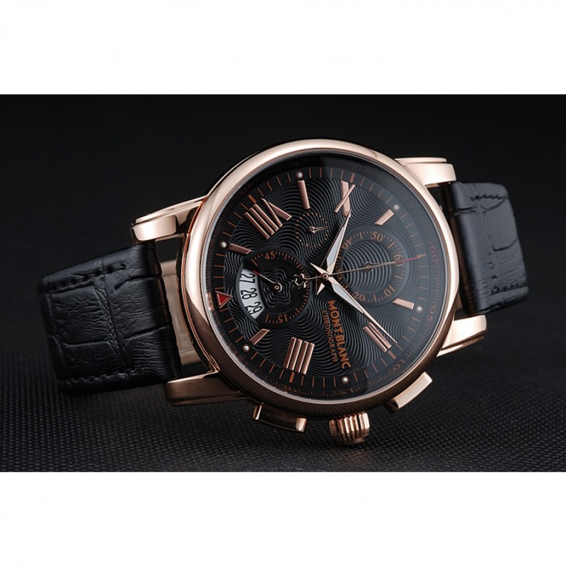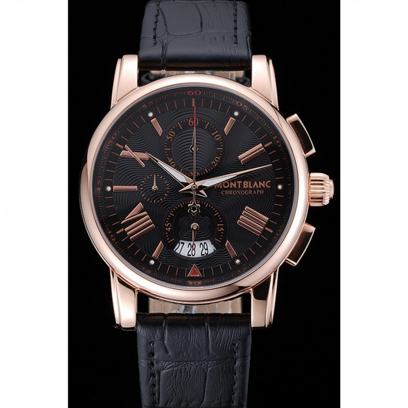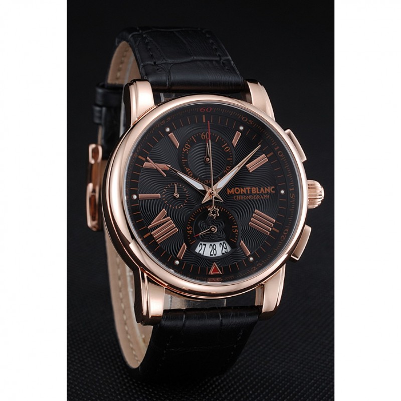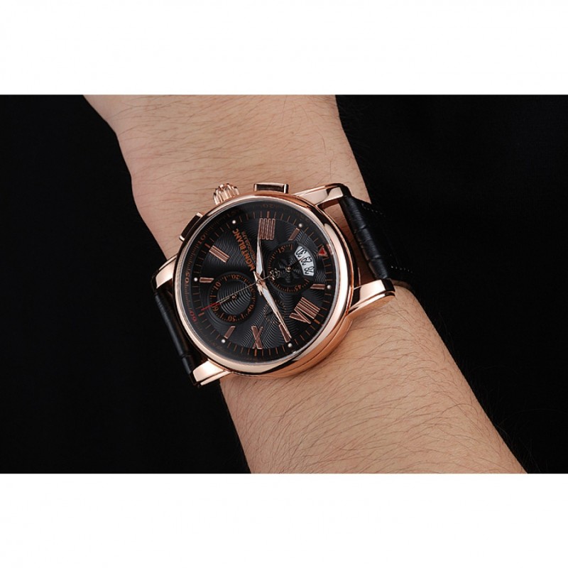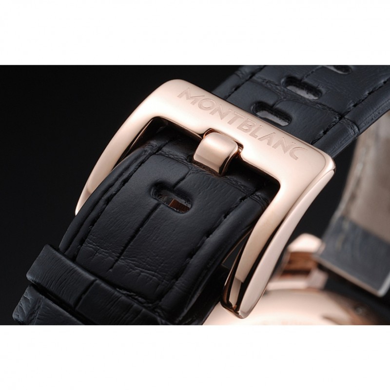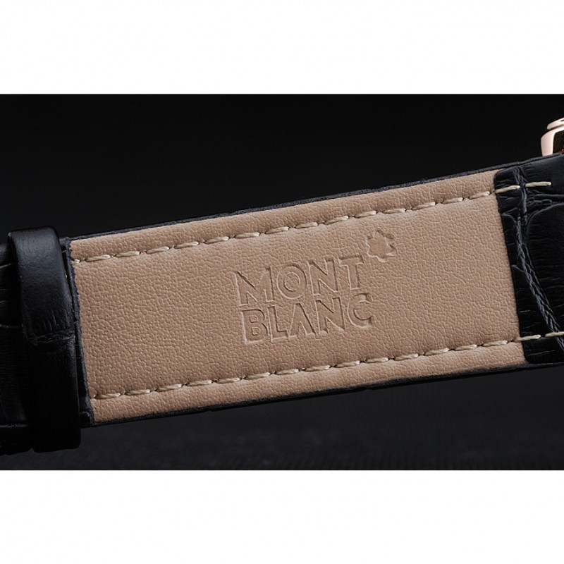 Bracelet:chaleur Montblanc bracelet en cuir crocodile noir gravé Montblanc gravé 18k crochet plaqué or rose fermoir -buckle