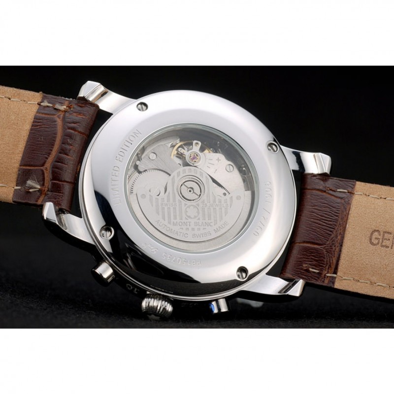 Couronne:acier inoxydable poli arrondi couronne cutwork avec le logo MontBlanc et deux boutons en acier inoxydable poli bouton couronnes de chaque côté de celui-ci