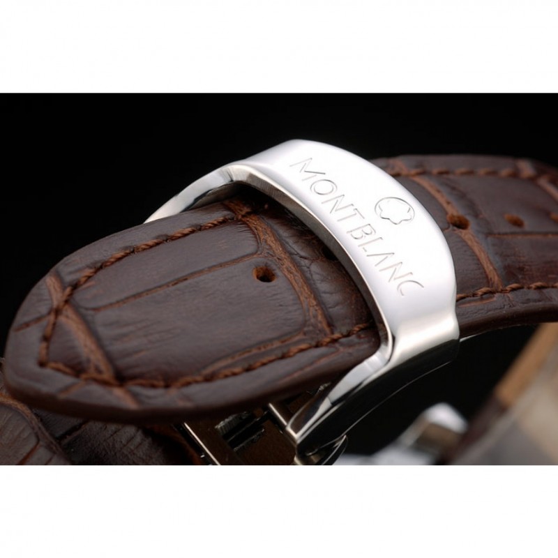 Bracelet:MontBlanc chaleur bracelet en cuir gaufré crocodile brun avec MontBlanc et logo acier inoxydable gravé poli fermoir à crochet caché