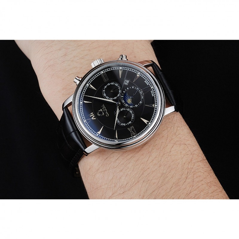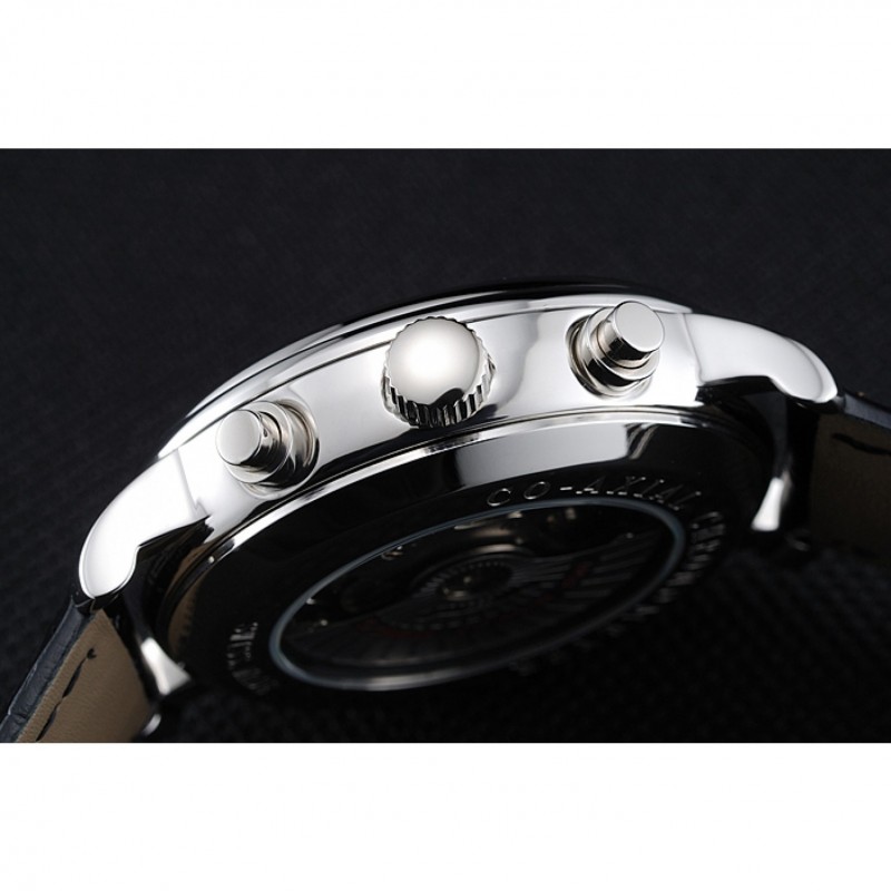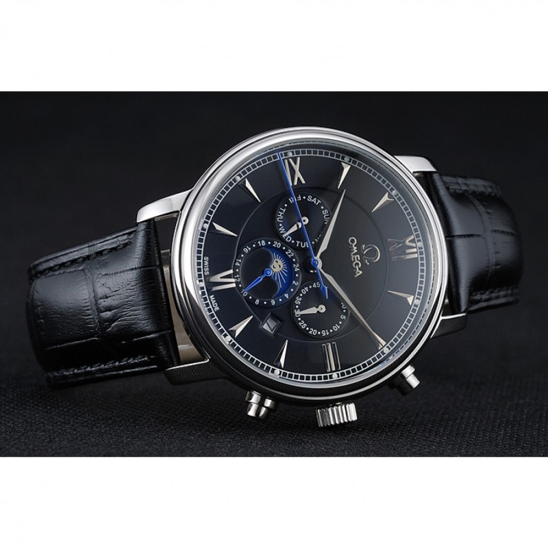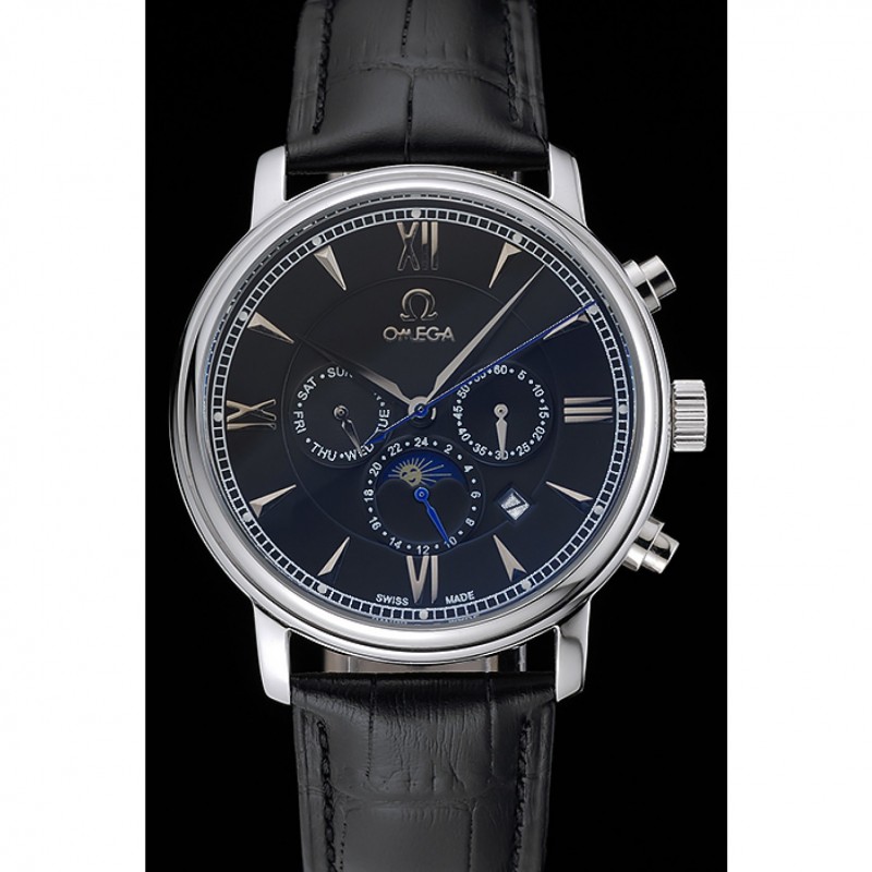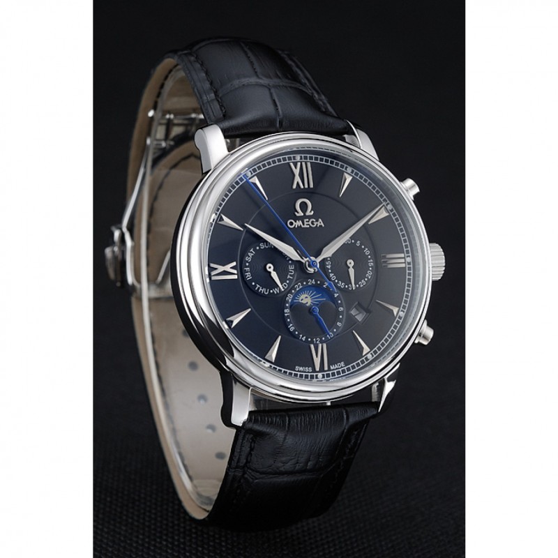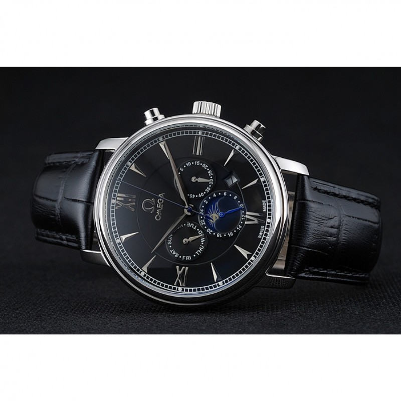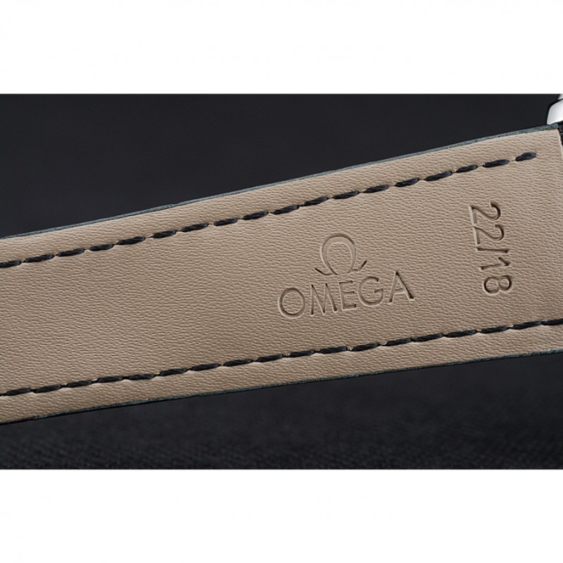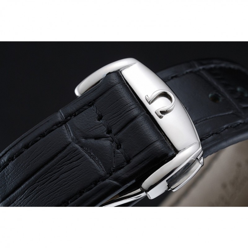 Bracelet:Omega et la chaleur logo en relief bracelet en cuir de crocodile noir avec le logo Omega gravé en acier inoxydable poli fermoir à boucle push-presse