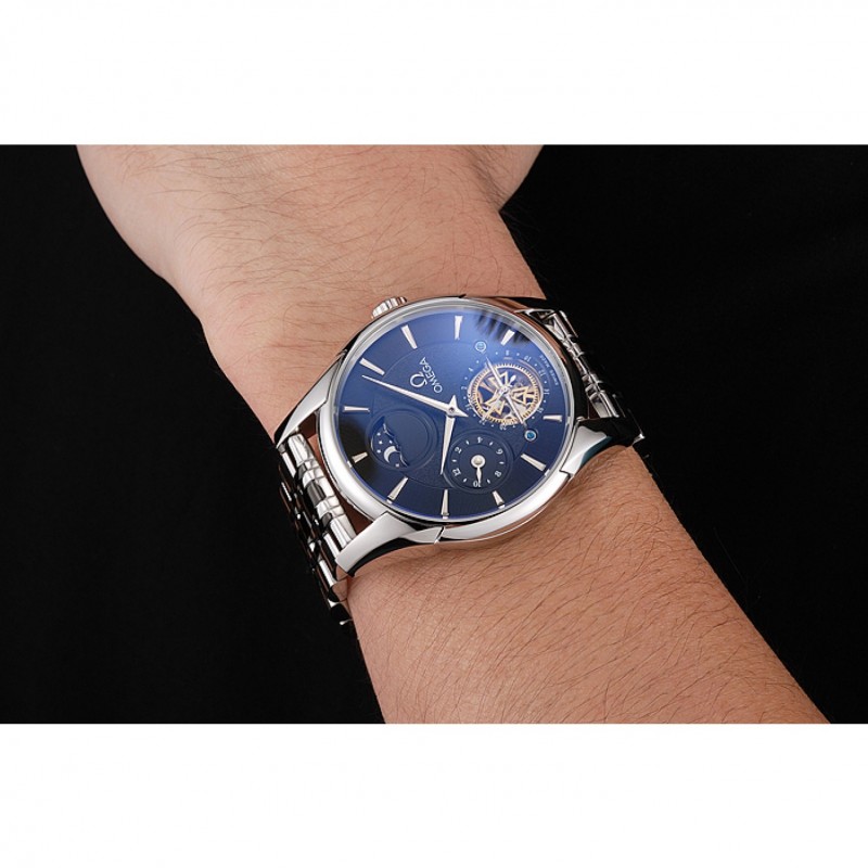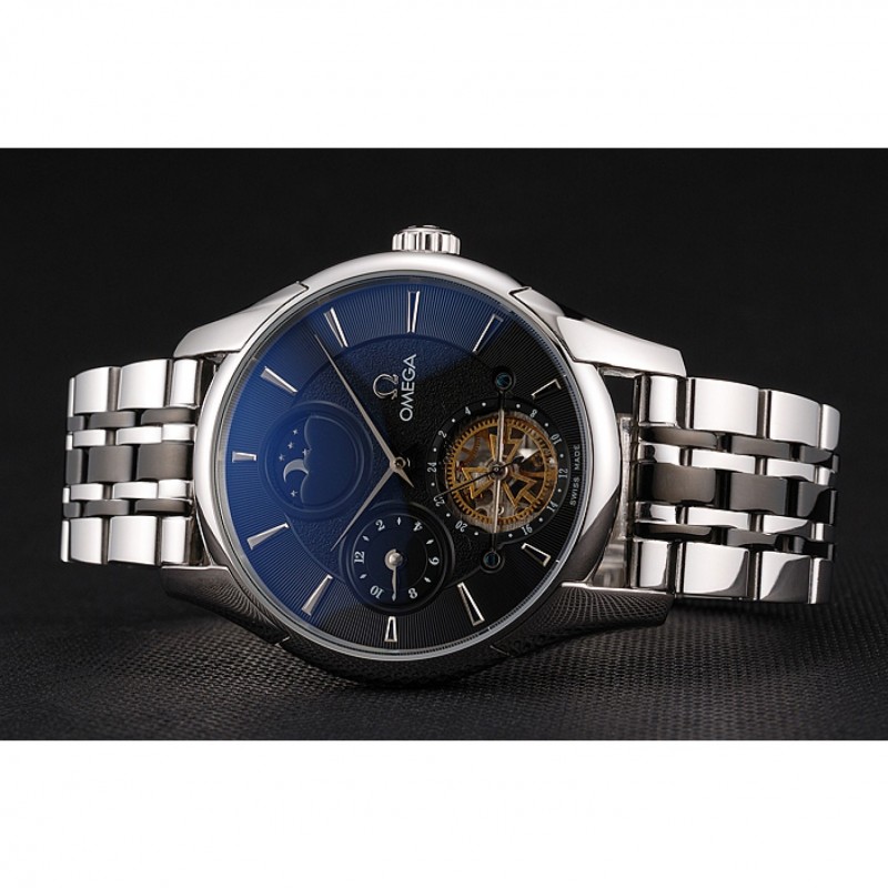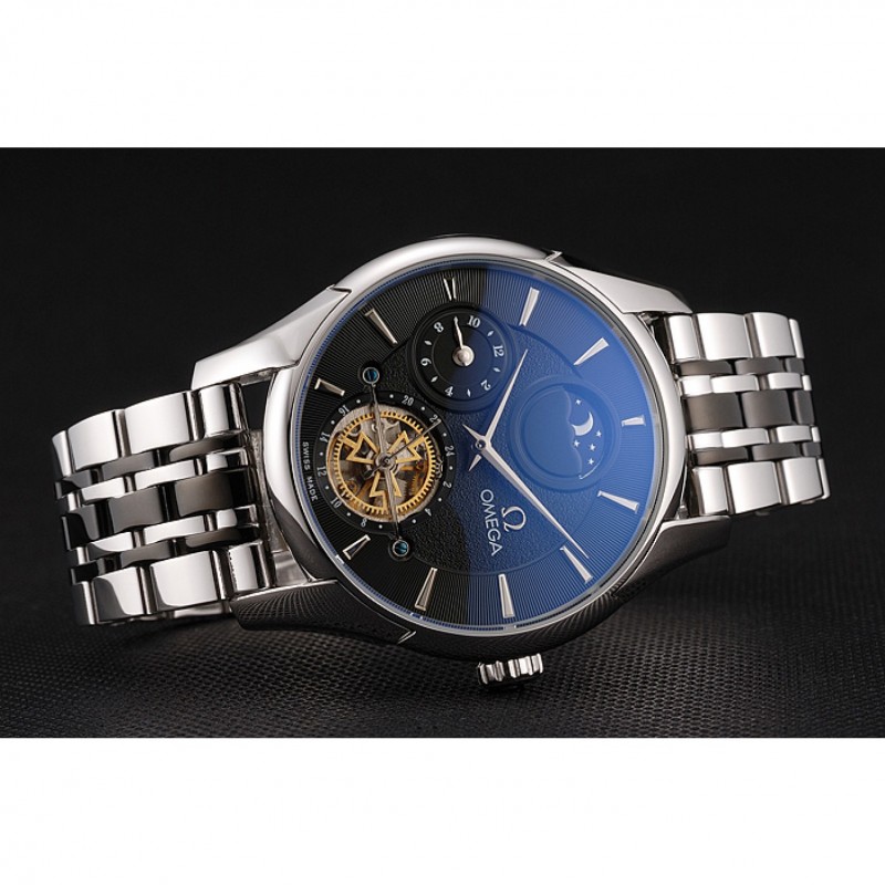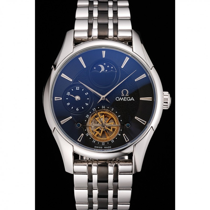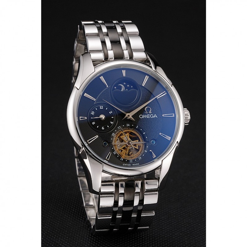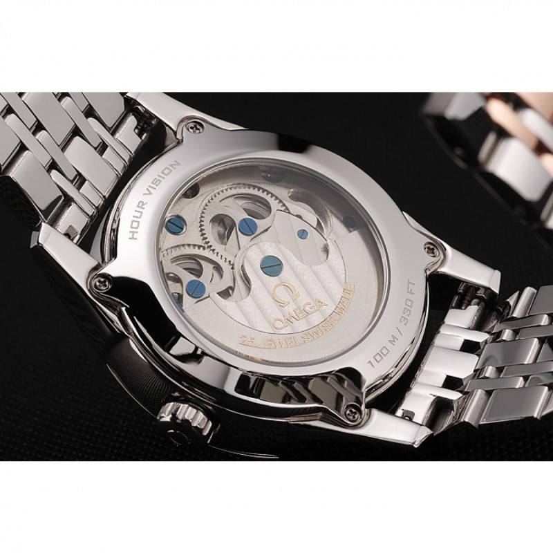 Retour:mécanique transparent centre révélateur inoxydable poli acier vissé en arrière avec inscription Omega