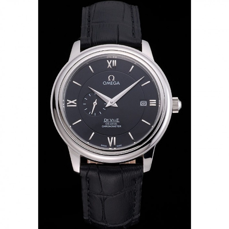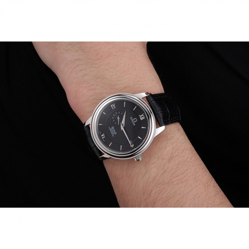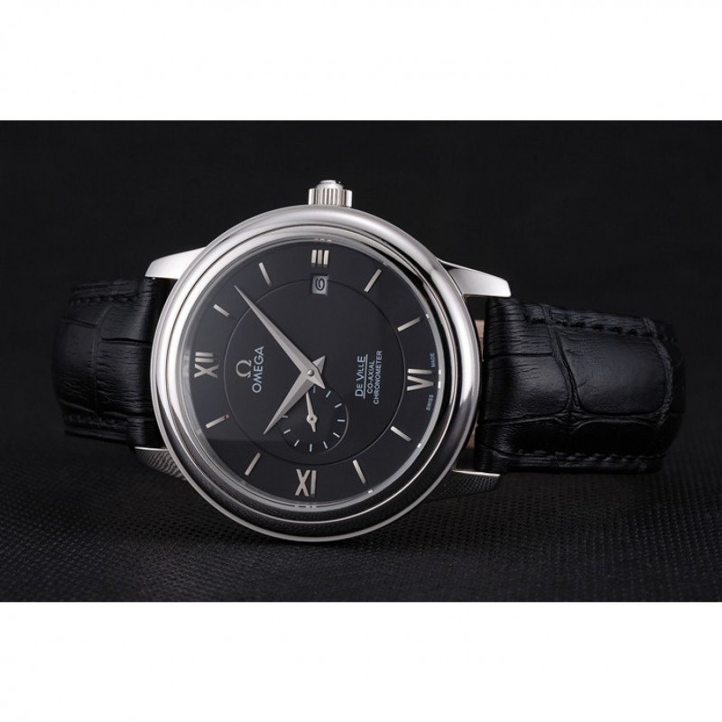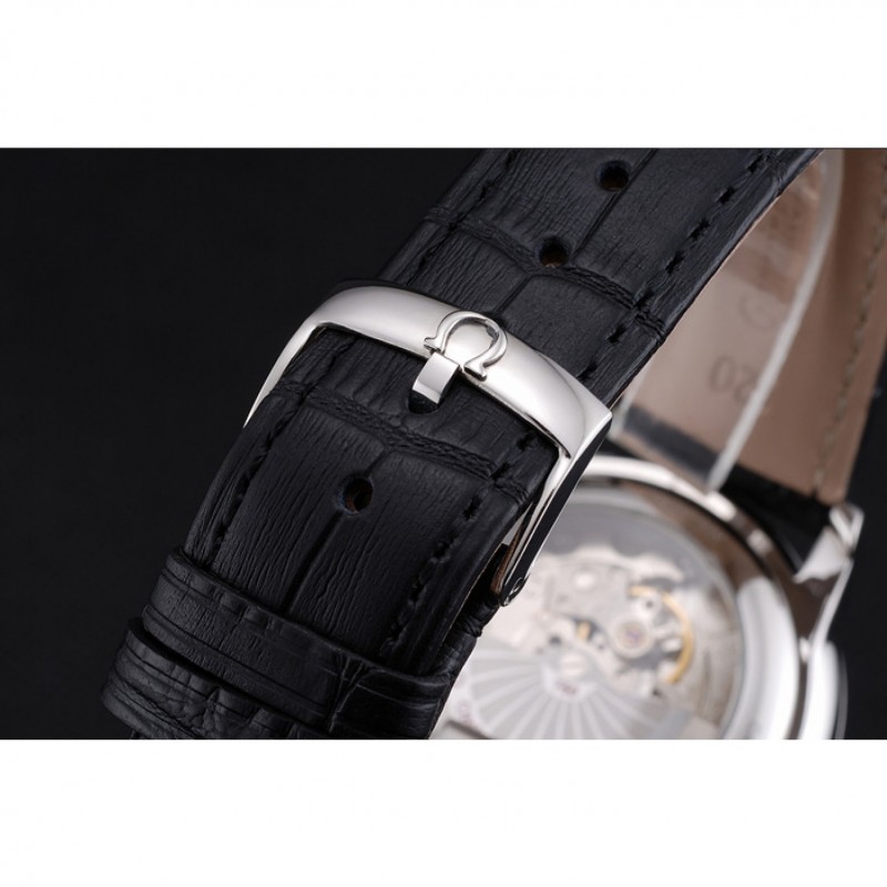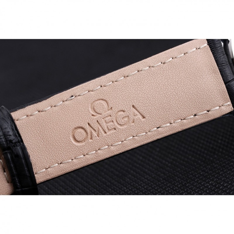 Bracelet:logo et chaleur Omega crocodile noir en relief bracelet en cuir avec Omega logo gravé fermoir crochet boucle en acier inoxydable poli