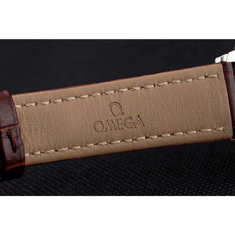 Bracelet:Omega et la chaleur logo en relief crocodile bracelet en cuir brun avec Omega logo gravé en acier inoxydable poli fermoir crochet boucle