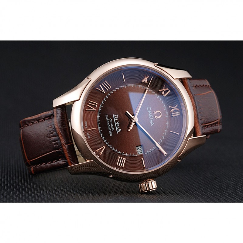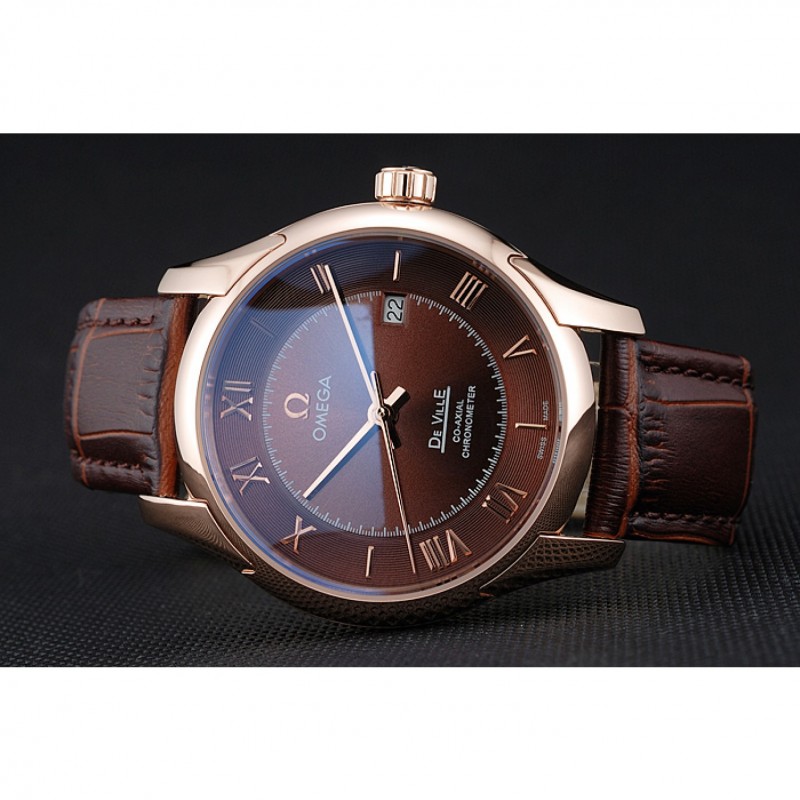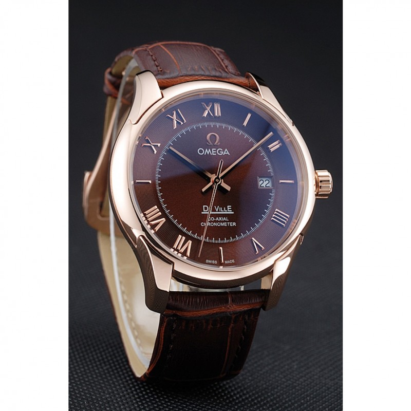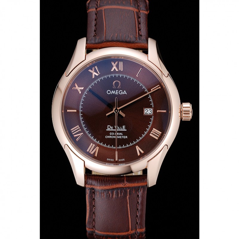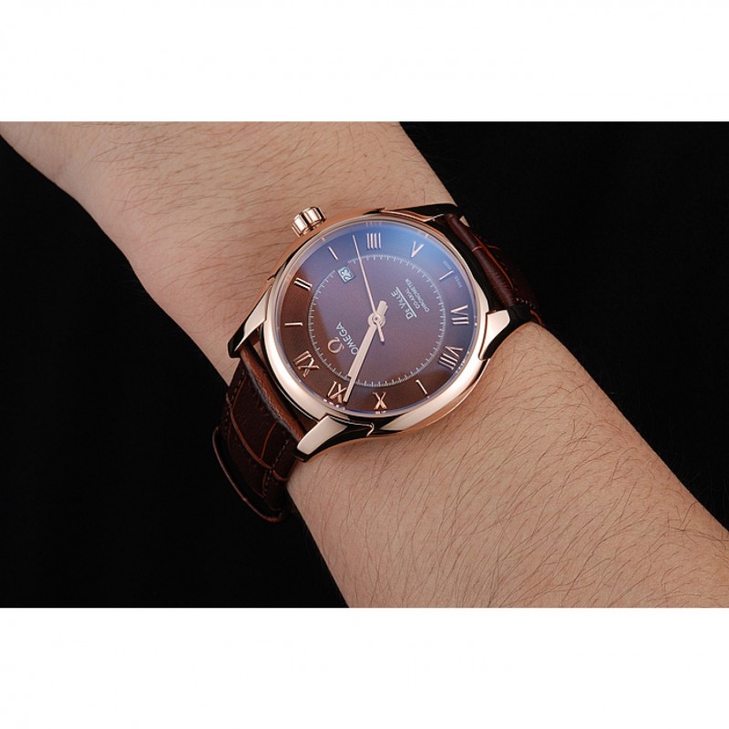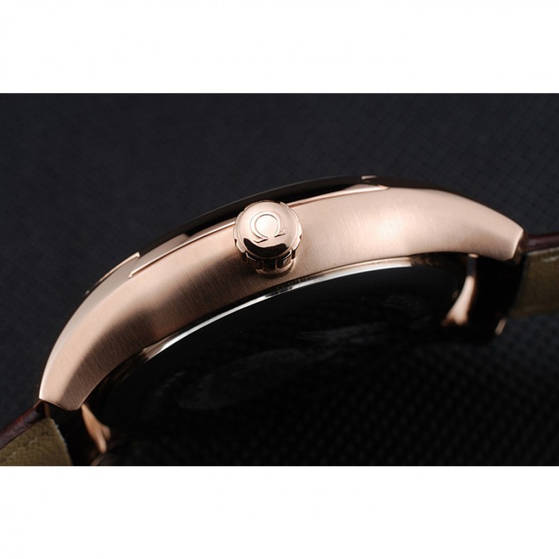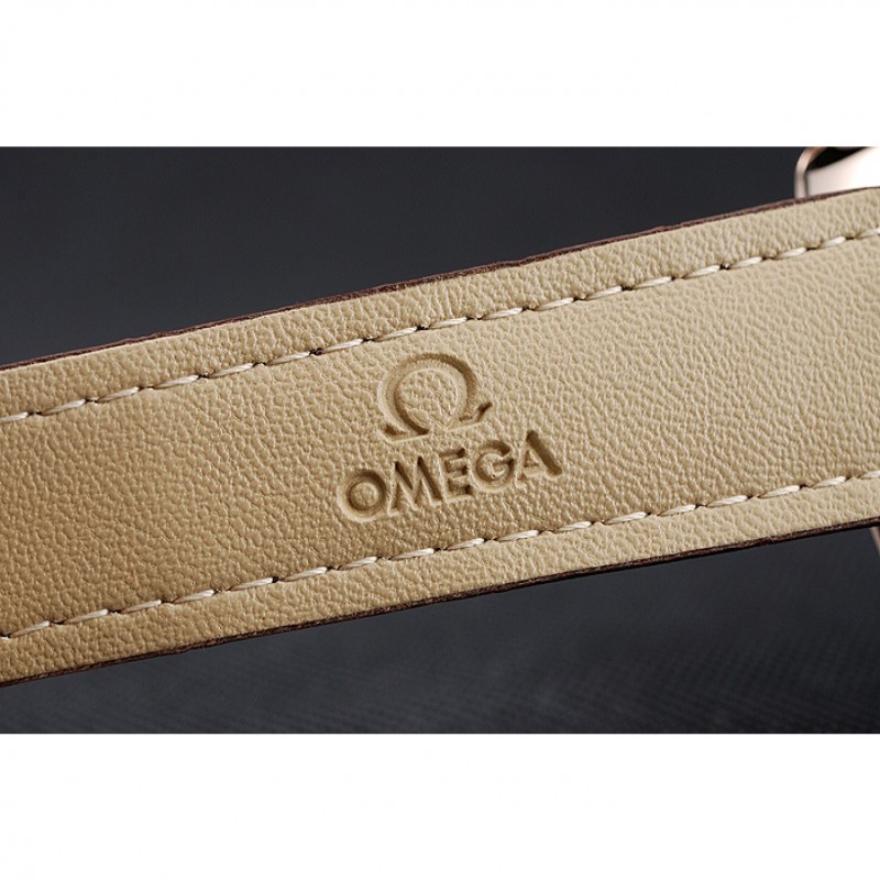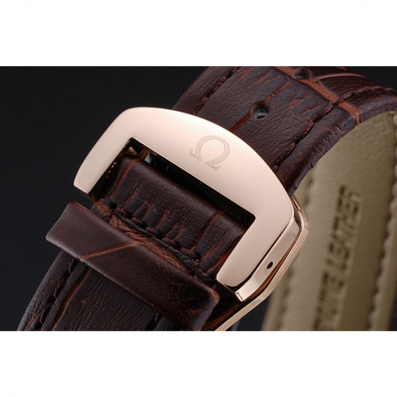 Bracelet:Logo et la chaleur Omega croco brun gaufrés sangle avec logo 18k gravé en or rose plaqué bouton-libération fermoir crochet