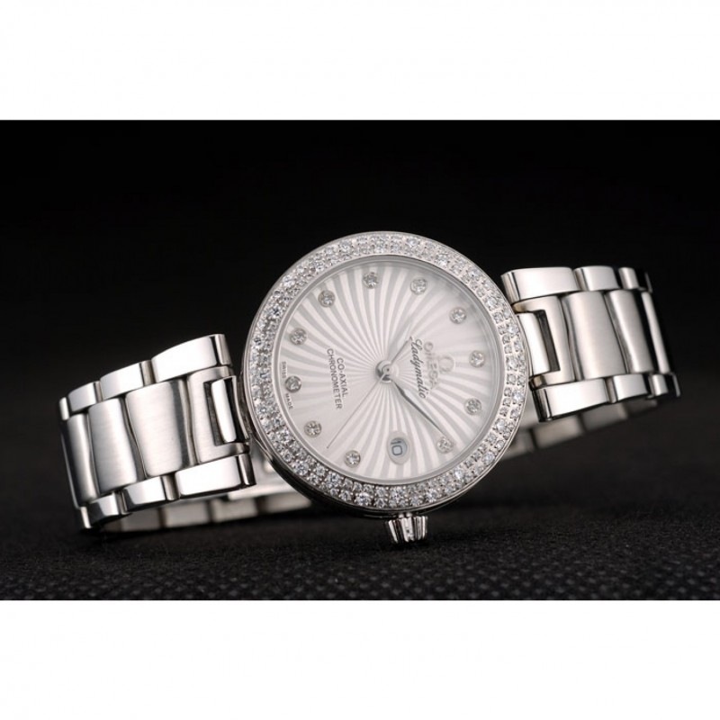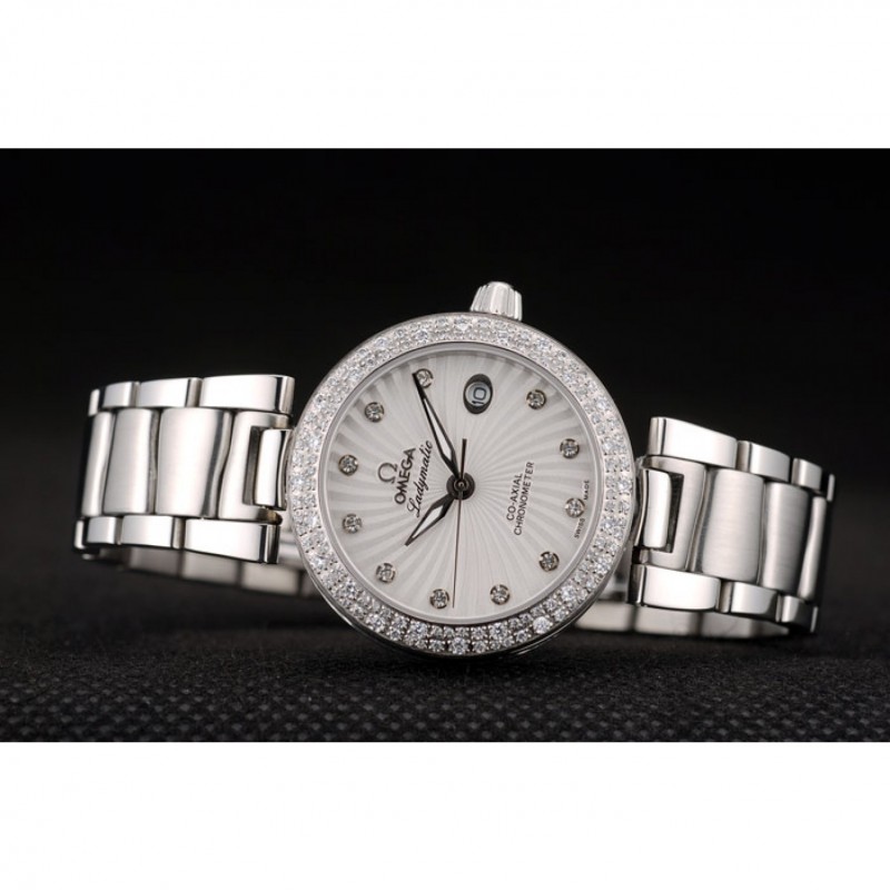 Omega DeVille Ladymatic iamond plaqué Bezel Cadran Blanc