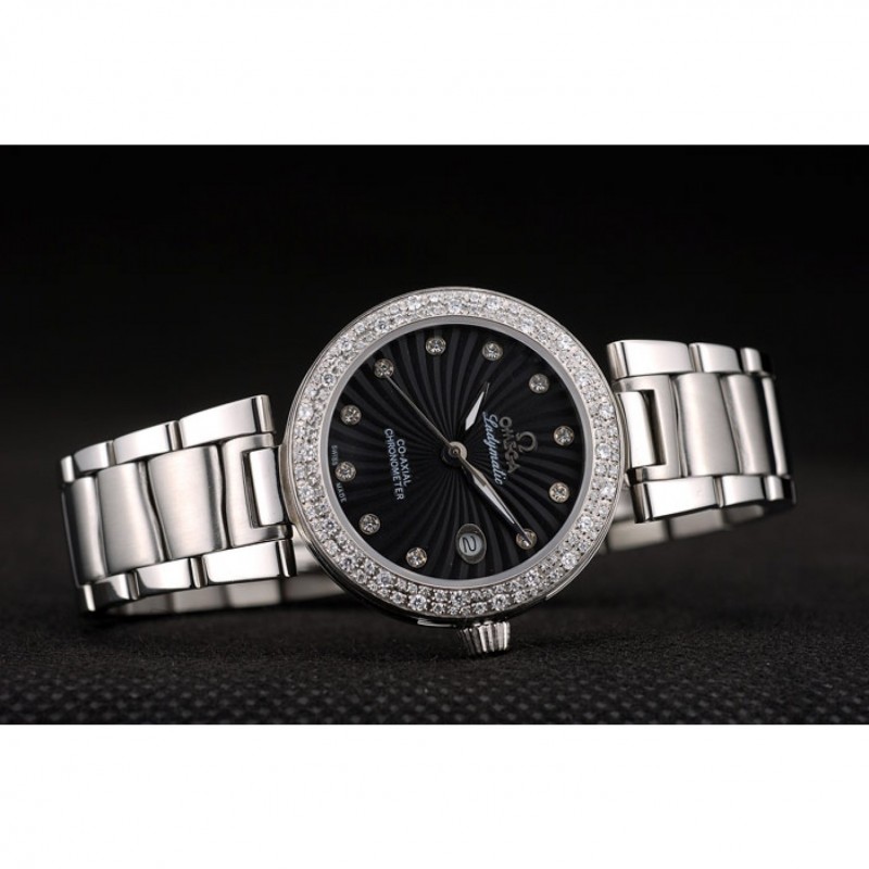 Retour:acier inoxydable poli vissé arrière avec gravure Omega Ladymatic