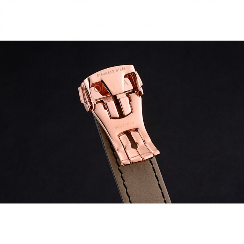 Bracelet:Omega, le logo et le code produit de la chaleur bracelet en cuir de crocodile noir en relief avec le logo 18k gravé en or rose plaqué bouton-libération fermoir crochet