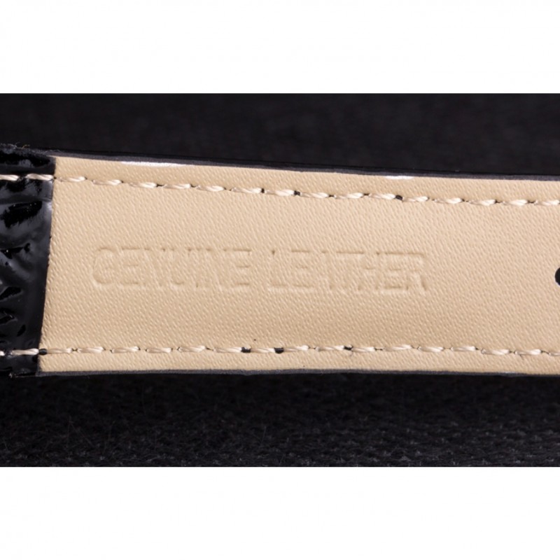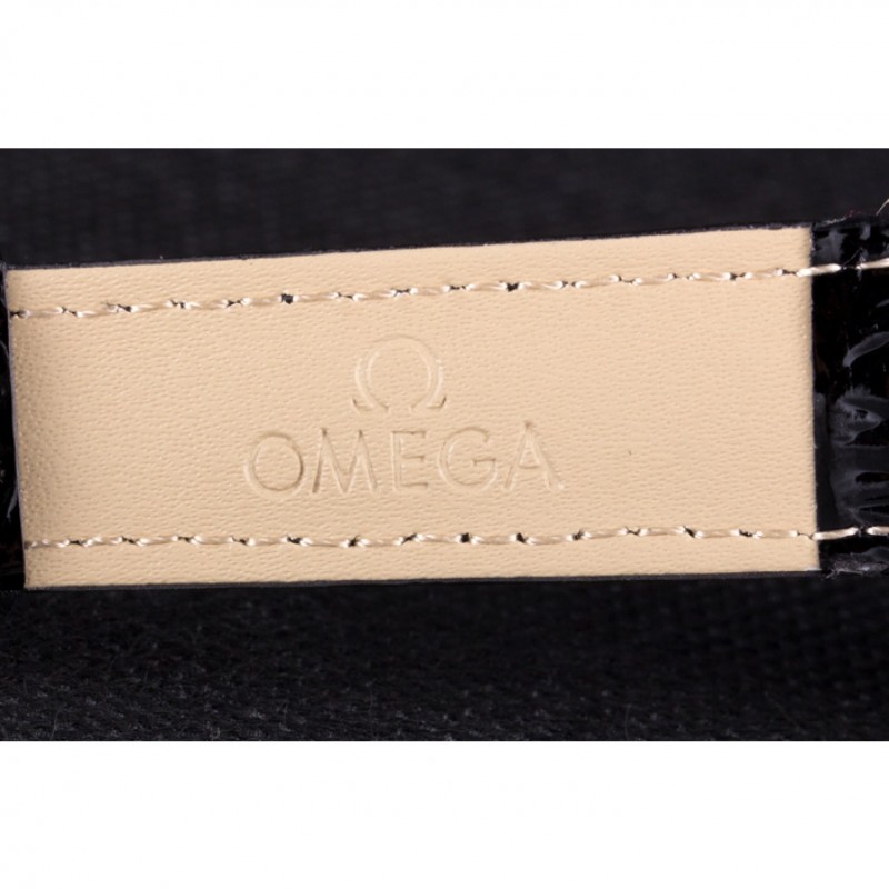 Bracelet:Patent bracelet en cuir de serpent noir avec timbre Omega embossé chaleur et dru mis en évidence Omega logo fermoir en acier inoxydable crochet boucle