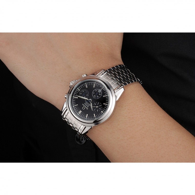 Couronne:Couronne acier inoxydable poli cutwork avec le logo Omega ainsi que deux couronnes supplémentaires, un de chaque côté de celui-ci