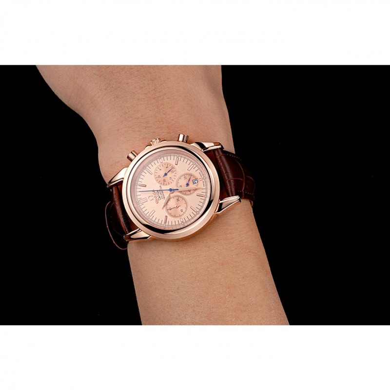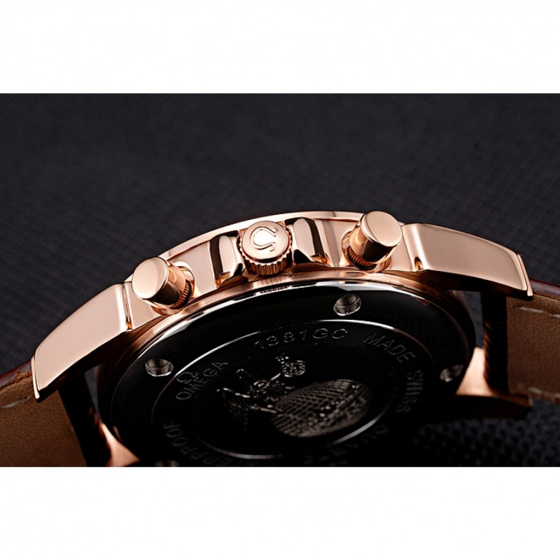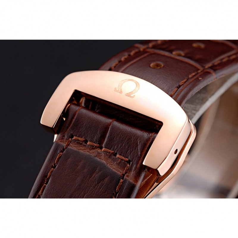 Bracelet:Brown bracelet en cuir de crocodile avec coutures blanches et Omega logo gravé rose fermoir crochet boucle d’or