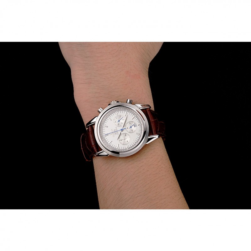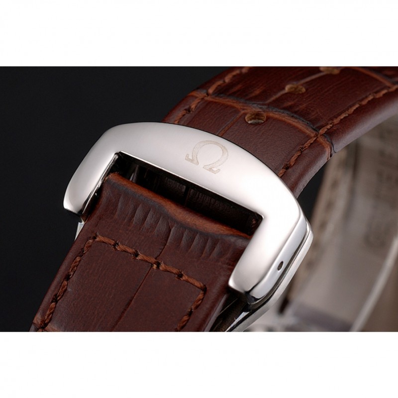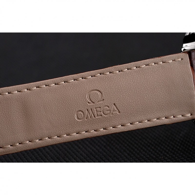 Bracelet:Brown bracelet en cuir de crocodile avec coutures blanches et logo Omega gravé fermoir crochet boucle en acier inoxydable