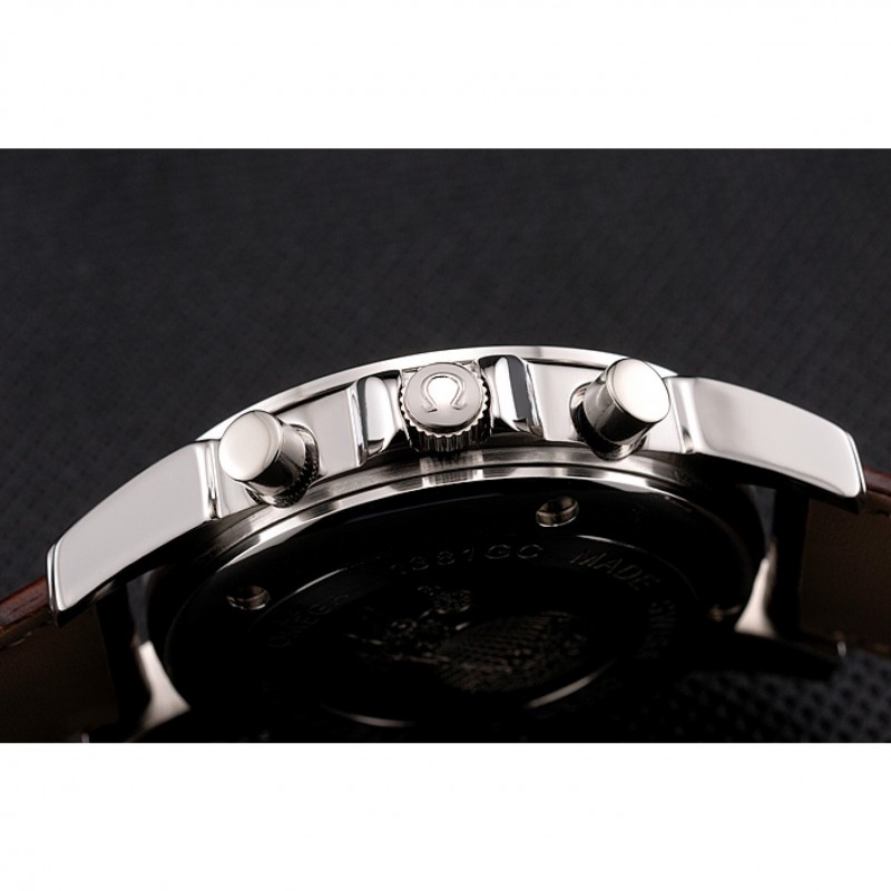 Couronne:couronne en acier inoxydable cutwork poli avec le logo Omega et deux couronnes supplémentaires, un de chaque côté de celui-ci