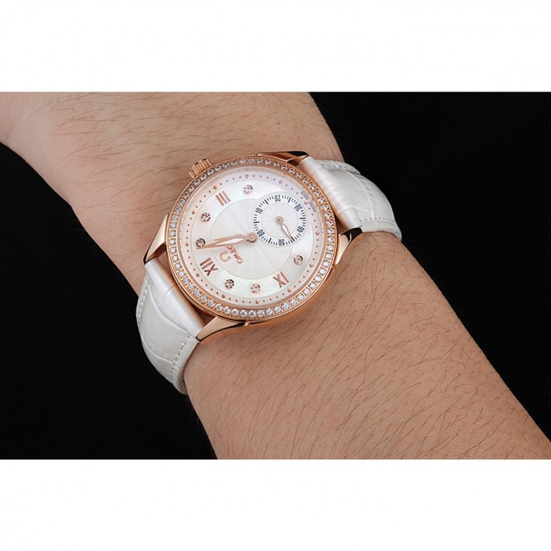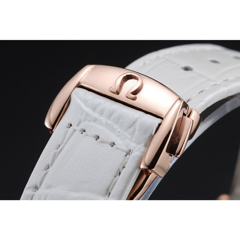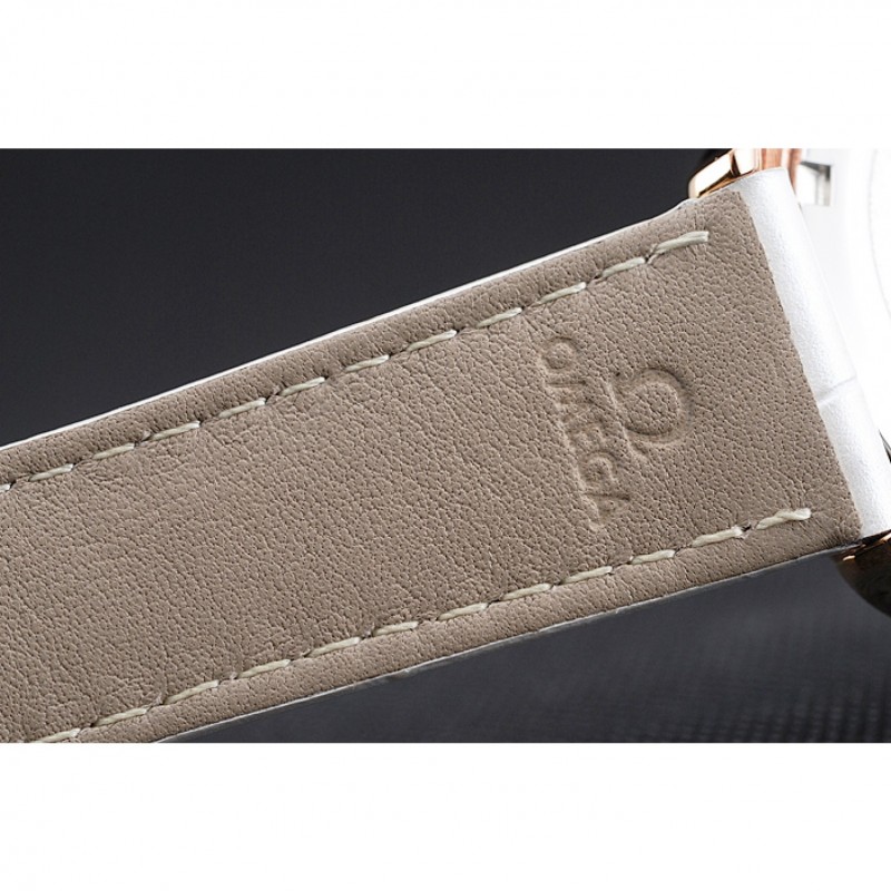 Bracelet:Omega et la chaleur estampillage bracelet en cuir de crocodile blanc avec le logo Omega gravé or jaune 18 carats plaqué bouton-libération fermoir crochet
