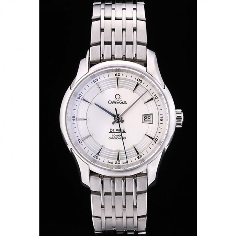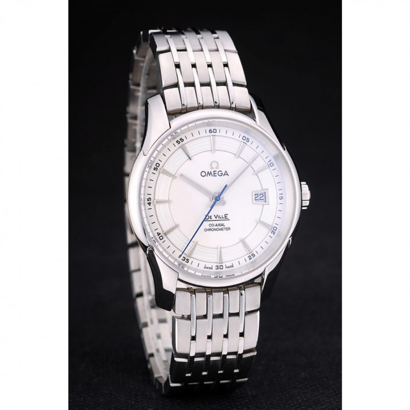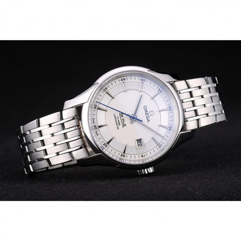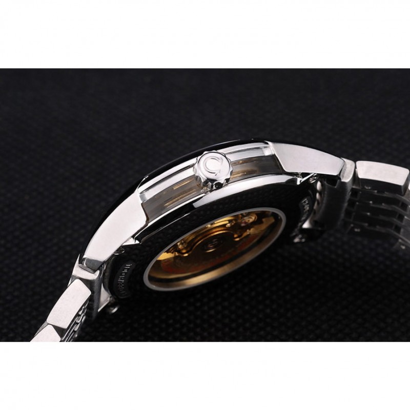 Retour:acier inoxydable poli vissé arrière avec la mécanique révélant transparents centre et gravures Omega