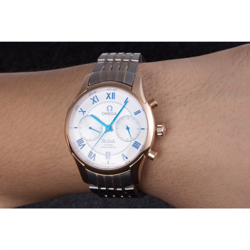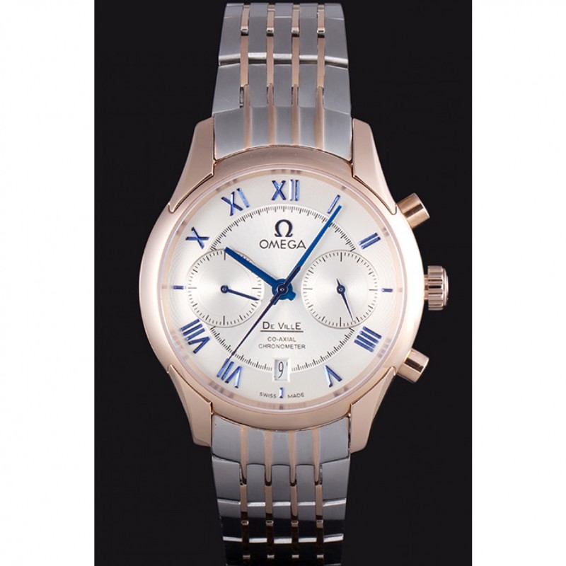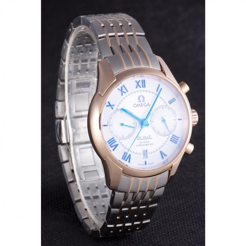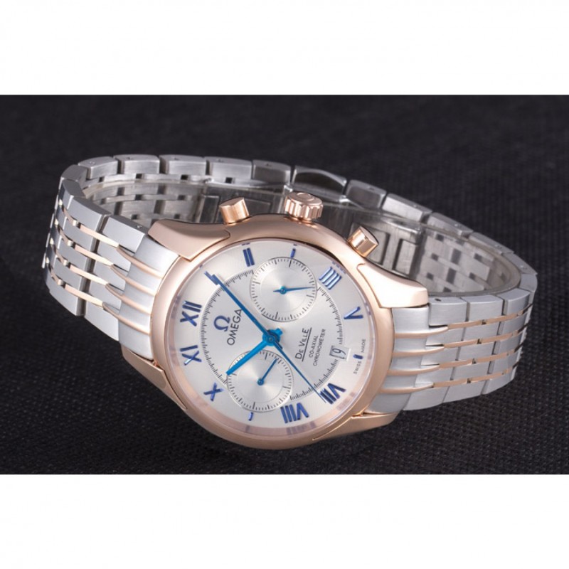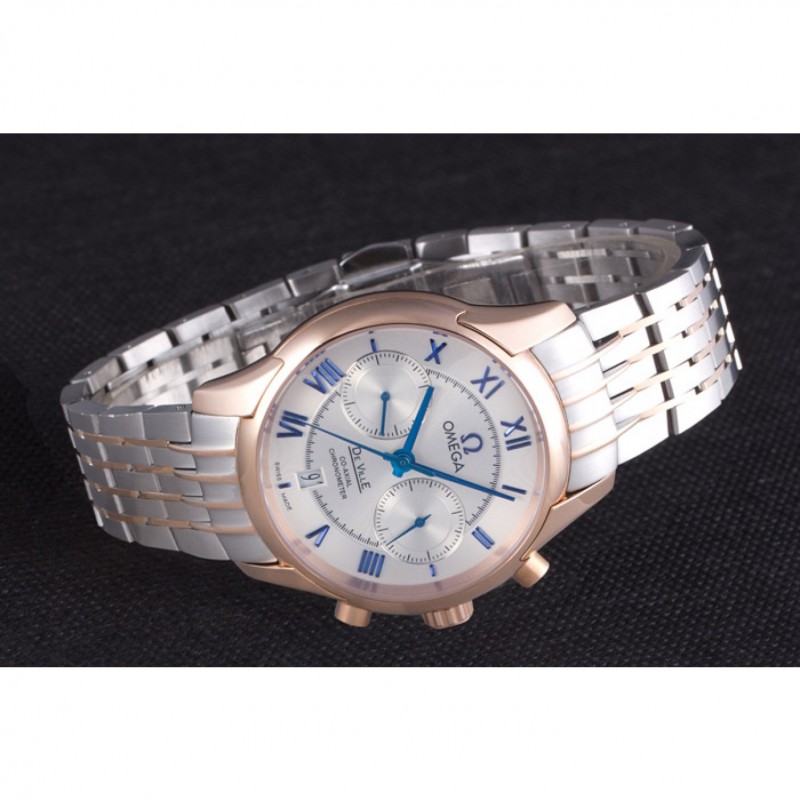 Bracelet:brossé et 18k or rose plaqué bracelet lien avec le logo Omega fermoir à bouton-libération gravé