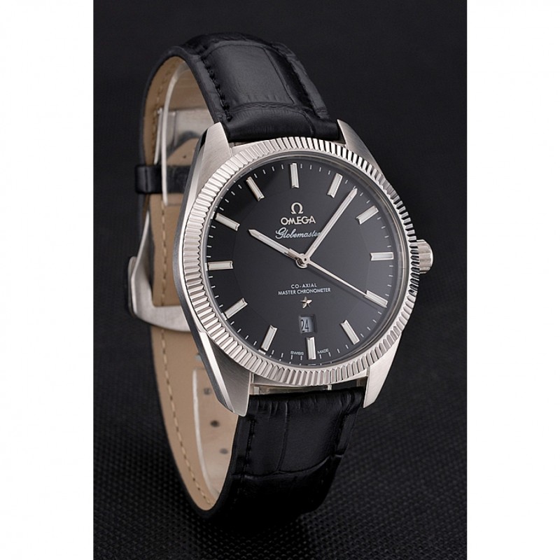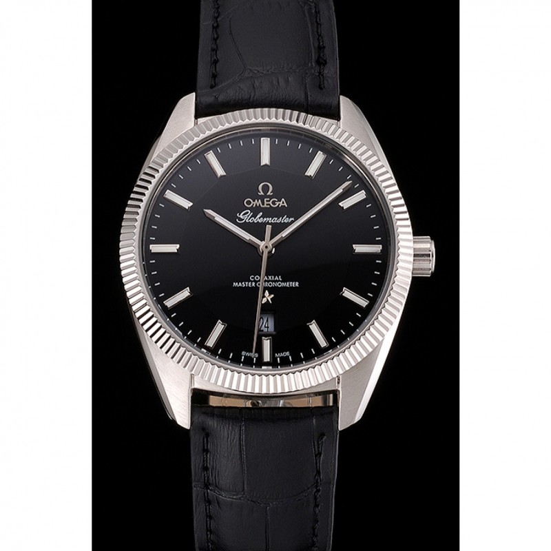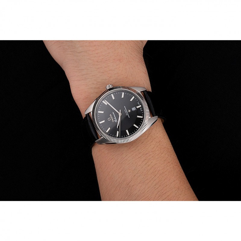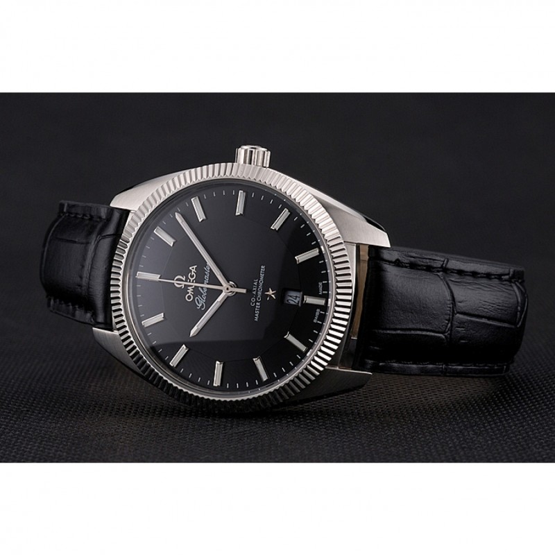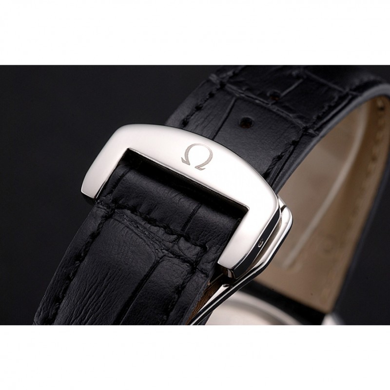 Bracelet:logo et la chaleur Omega gaufrée bracelet en cuir de crocodile noir avec le logo inscrit crochet fermoir en acier inoxydable poli
