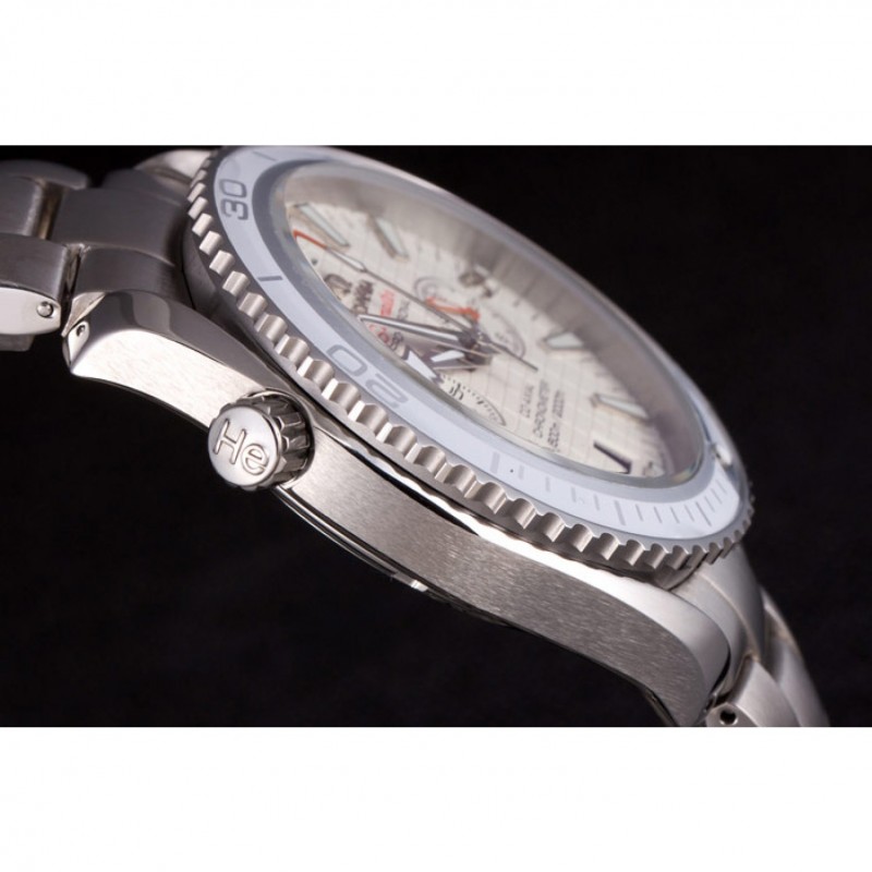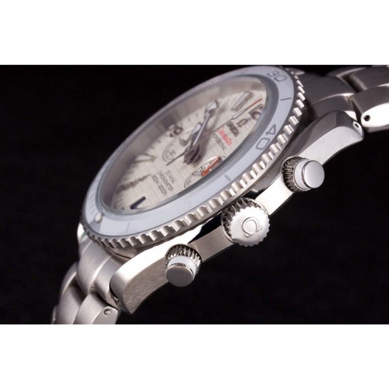 Couronne:Omega logo gravé couronne en acier inoxydable cutwork poli avec une couronne de bouton-poussoir de chaque côté et une couronne cutwork sur le dessus adjacent