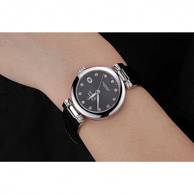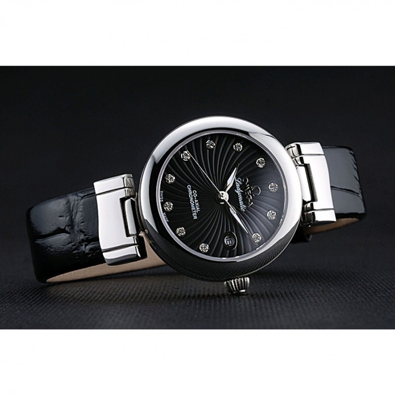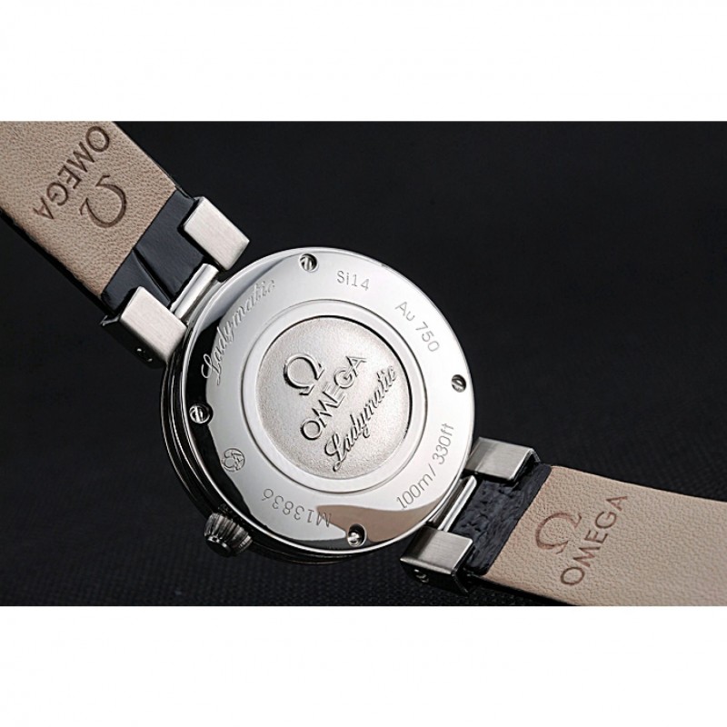 Retour:acier inoxydable poli vissé arrière avec gravure Omega Ladymatic