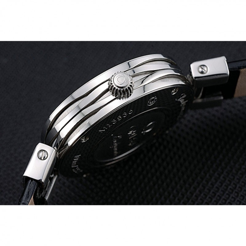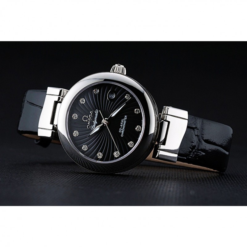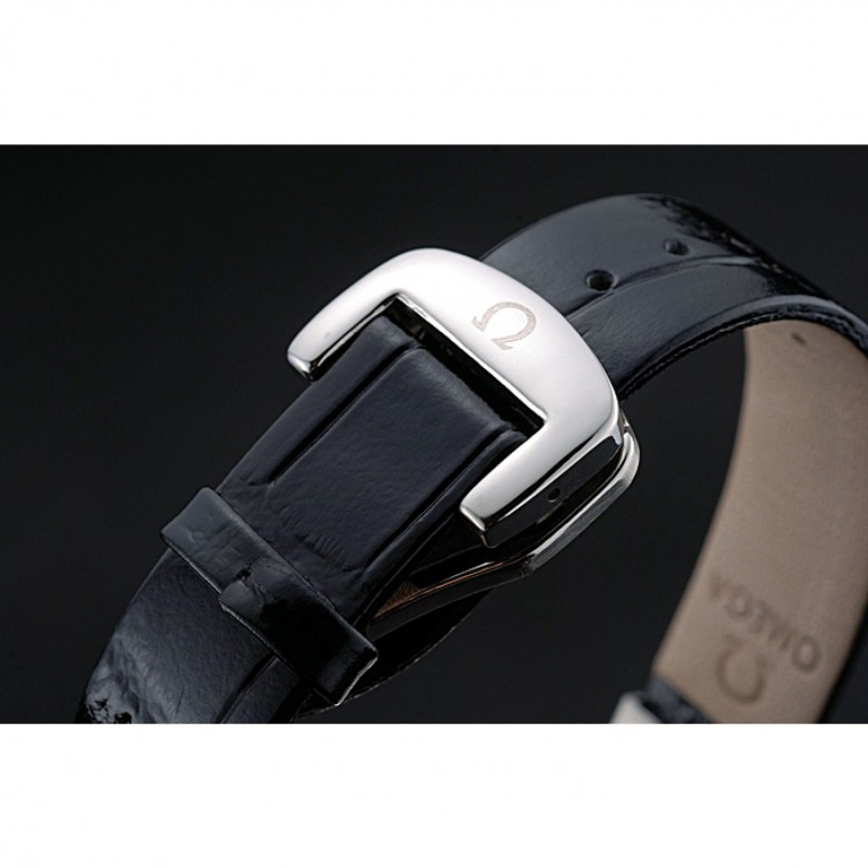 Bracelet:Omega et la chaleur estampillage crocodile bracelet en cuir noir avec logo gravé fermoir crochet en acier inoxydable poli