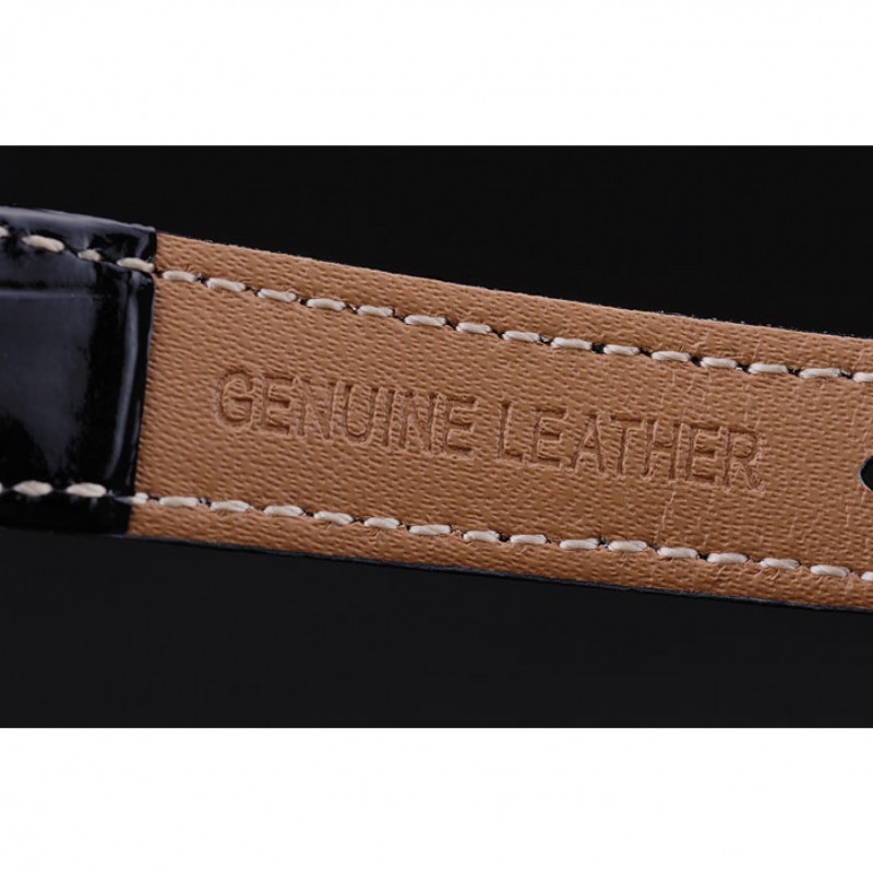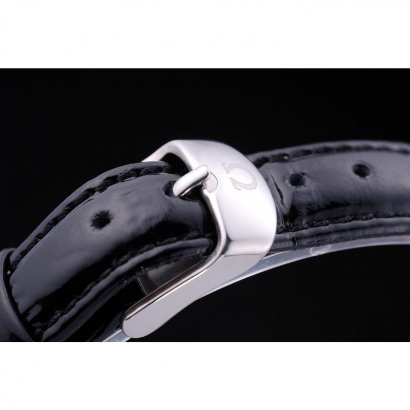 Bracelet:chaleur Omega bracelet en cuir de crocodile verni noir en relief avec Omega inscrit fermoir crochet boucle en acier inoxydable poli
