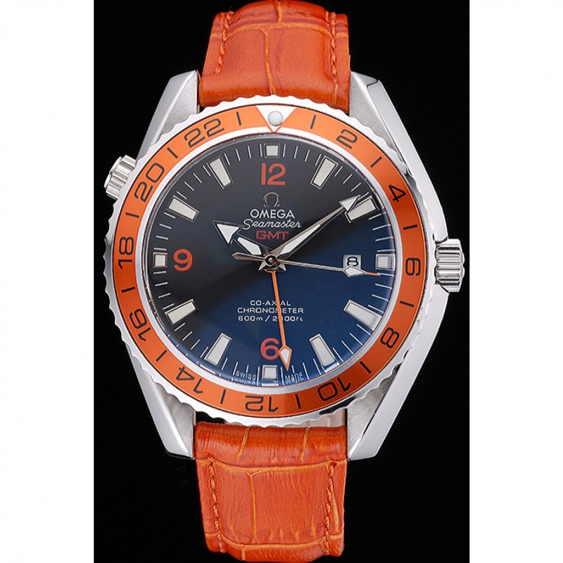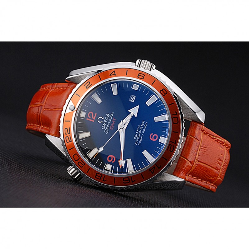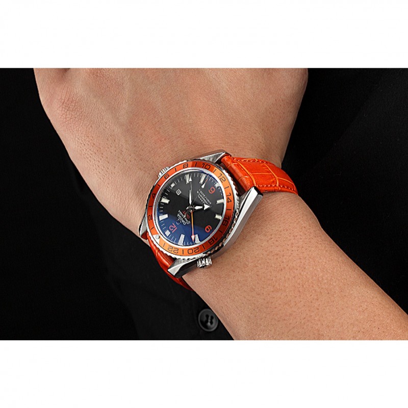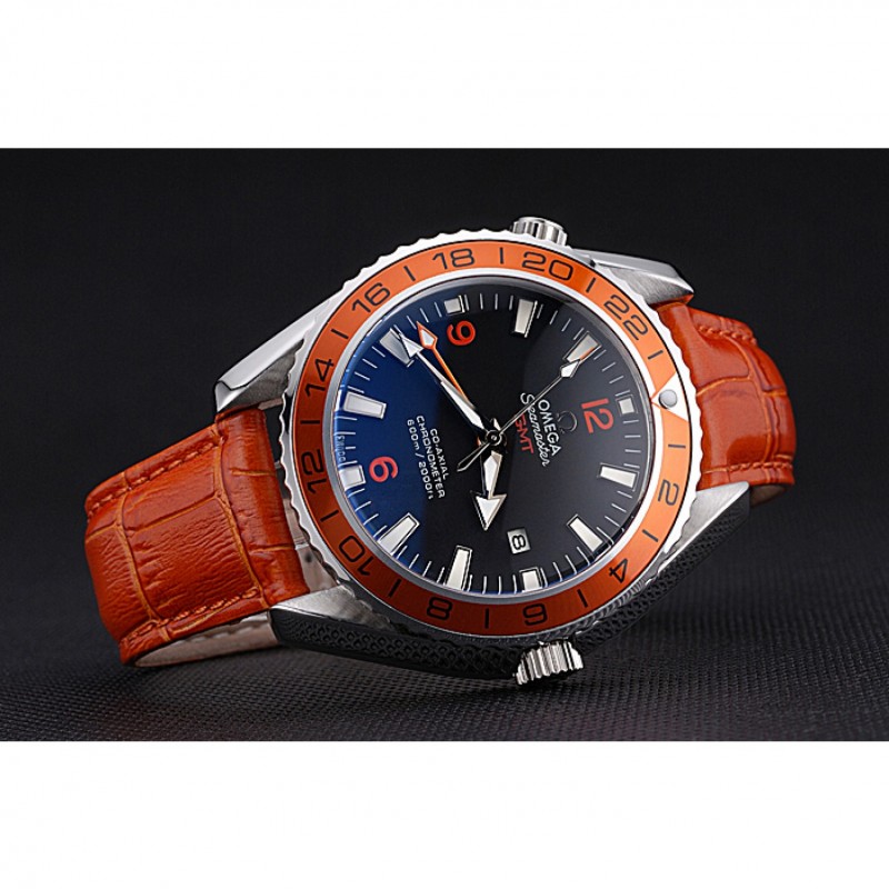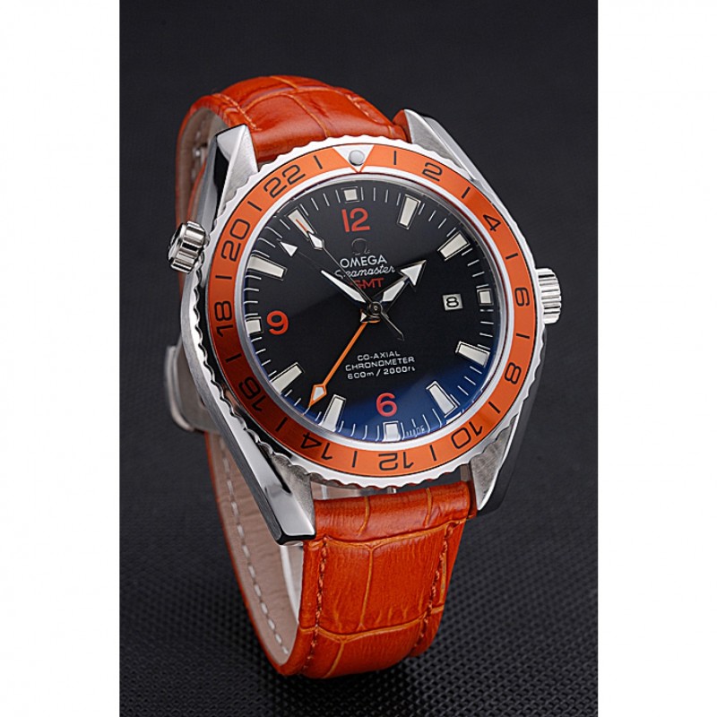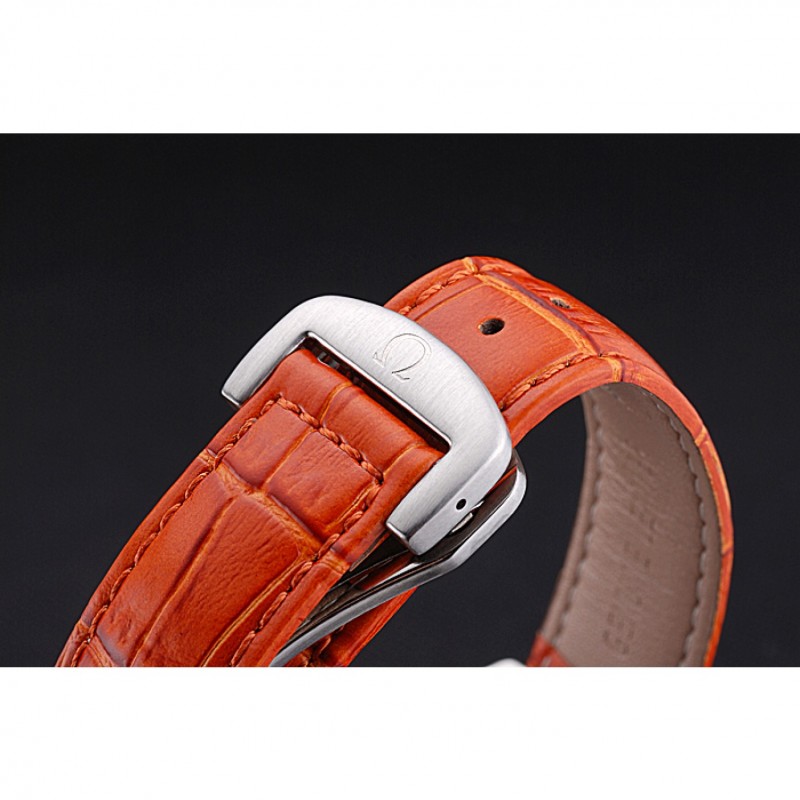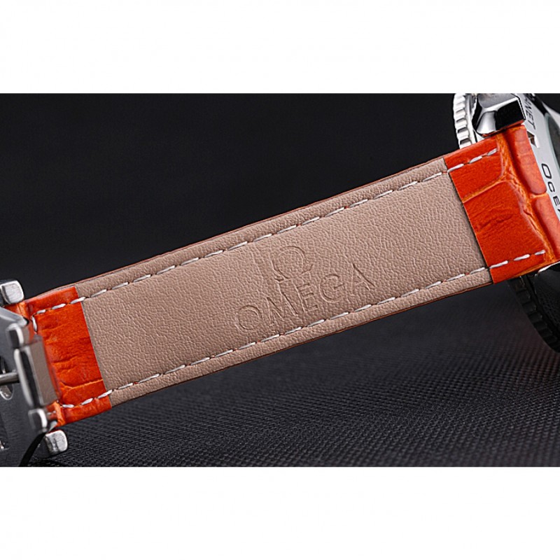 Bracelet:Omega et le logo bracelet en cuir de crocodile orange en relief de chaleur avec le logo Omega gravé fermoir crochet en acier inoxydable brossé