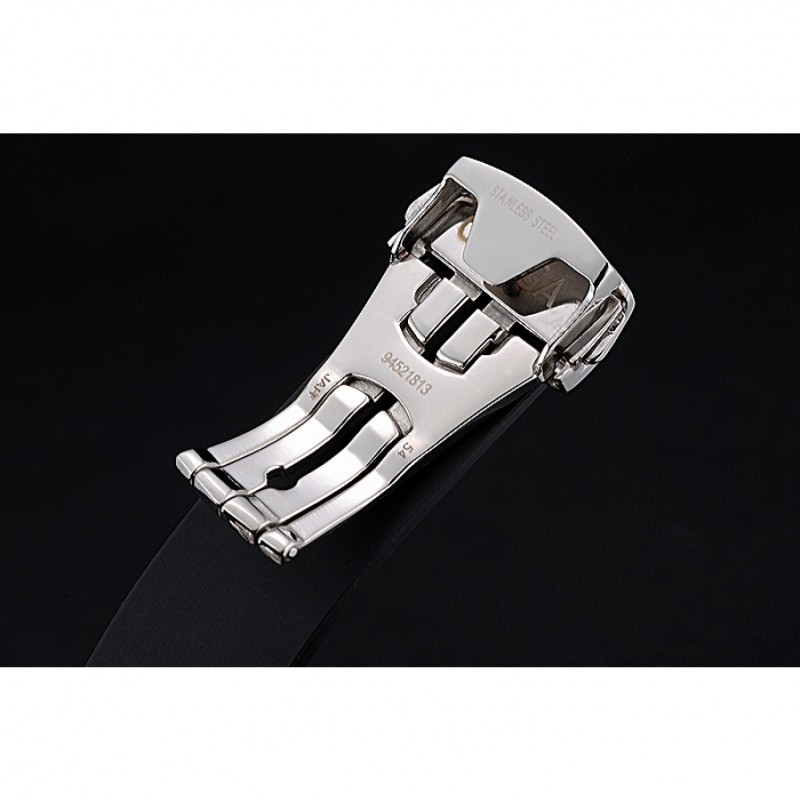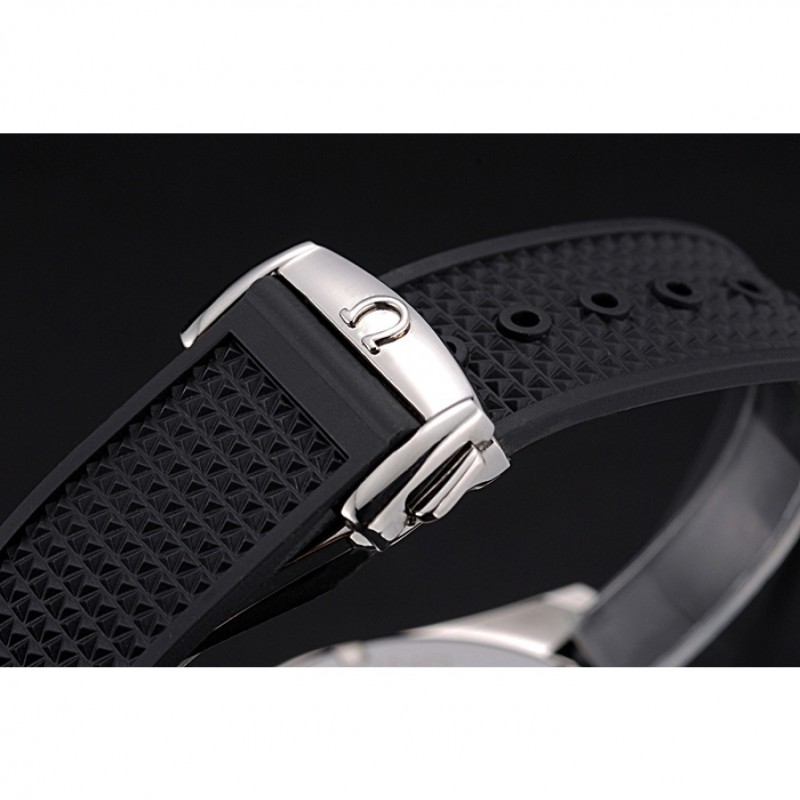 Bracelet:Omega et logo chaleur bracelet en cuir noir texturé en relief avec logo fermoir gravé crochet poussoir à libération acier inoxydable poli