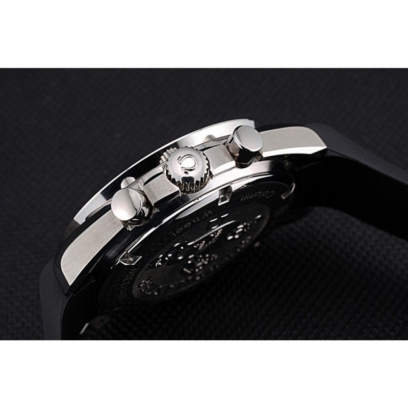 Couronne:Omega logo couronne en acier inoxydable poli gravé avec une couronne bouton-poussoir rond de chaque côté de celui-ci