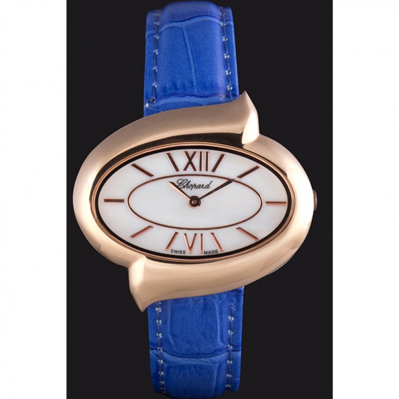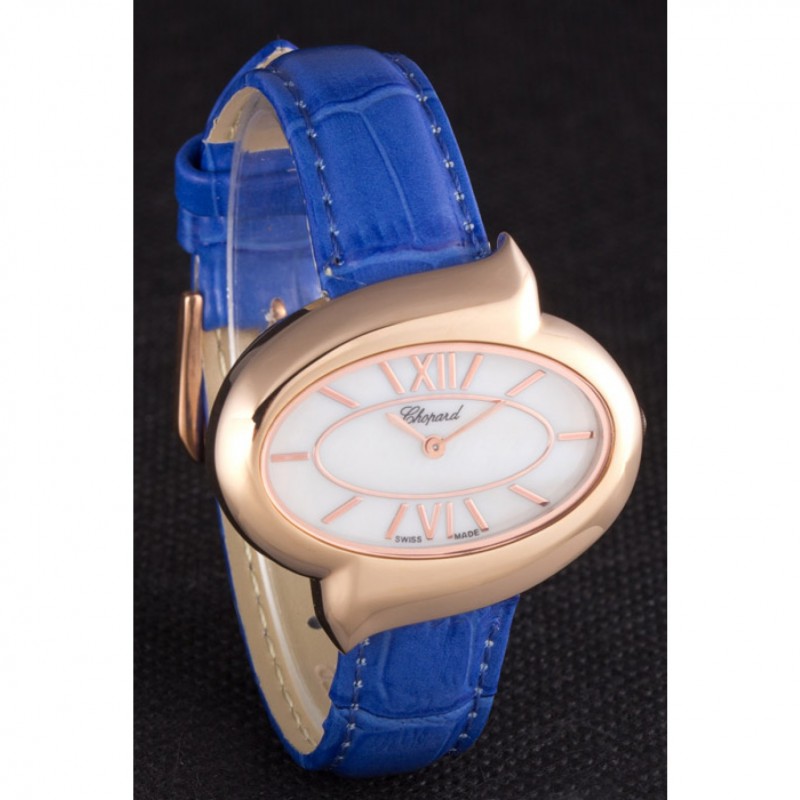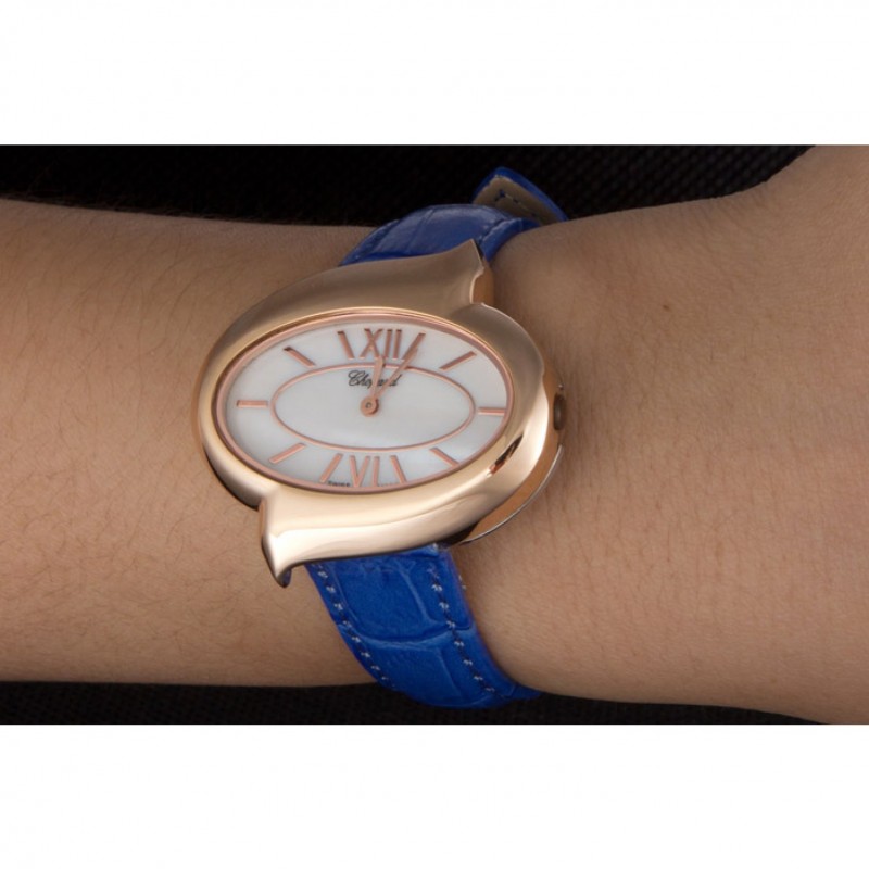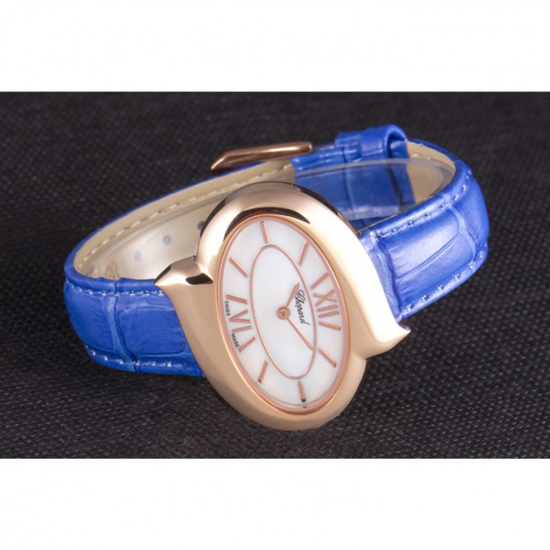 Bracelet:chaleur Chopard bracelet en cuir de crocodile bleu gravé rose 18K-plaqué or fermoir crochet-boucle