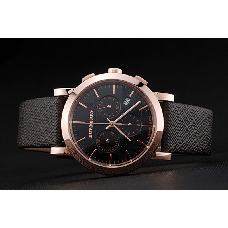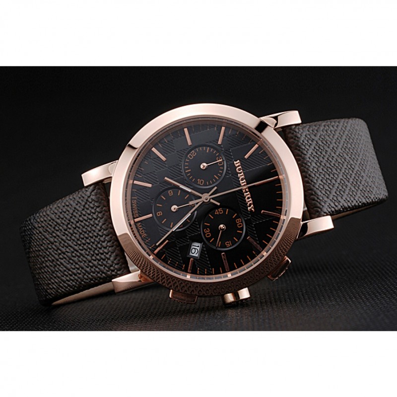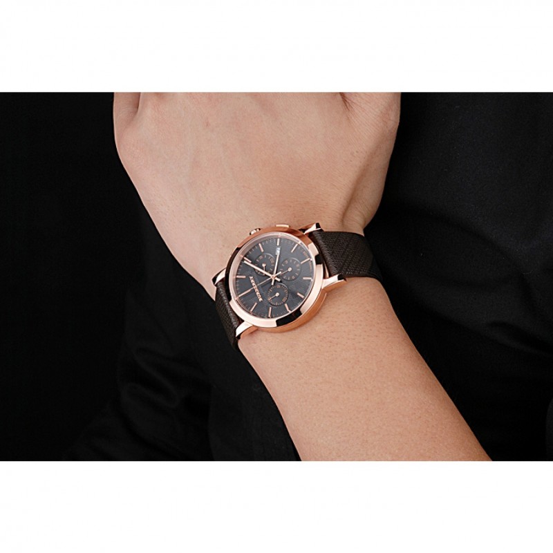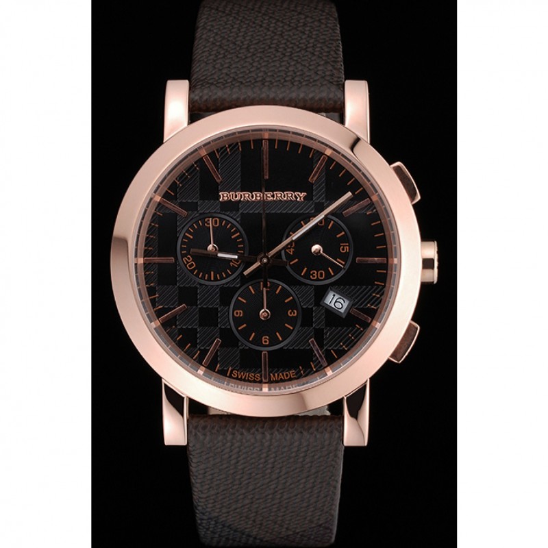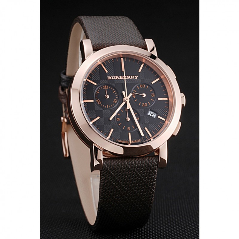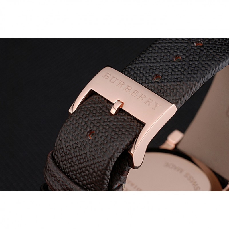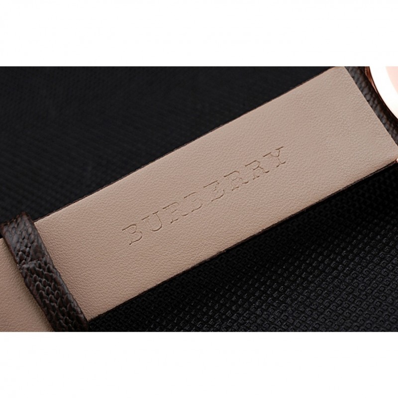 Bracelet:chaleur Burberry cuir texturé marron gravé Burberry gravé 18k rose plaqué or fermoir crochet-boucle