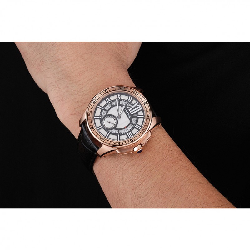 Bezel:18k or rose plaqué lunette en émail noir marqueurs chiffres arabes minute