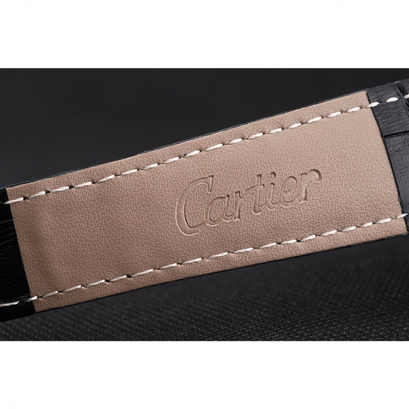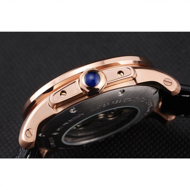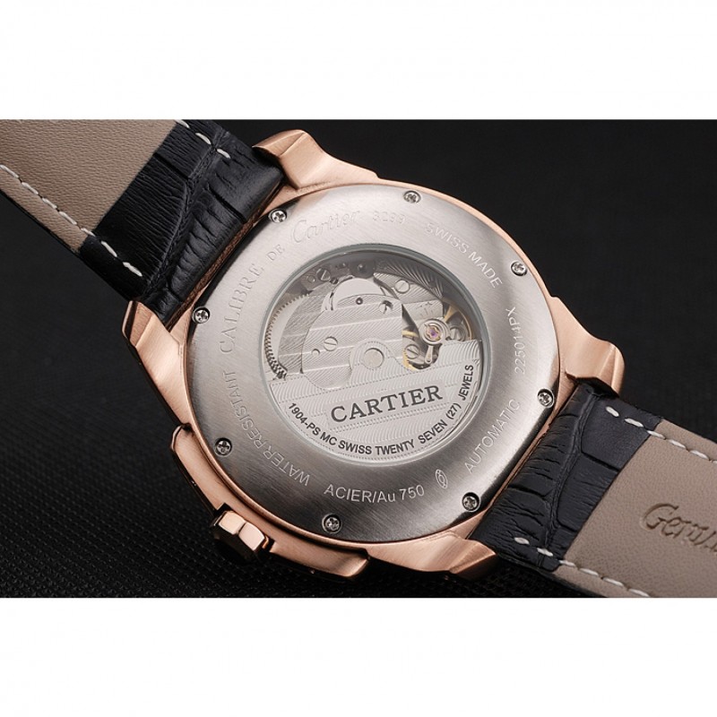 Retourmécanique transparent révélant centre acier inoxydable brossé vissé dans le dos avec des gravures Cartier