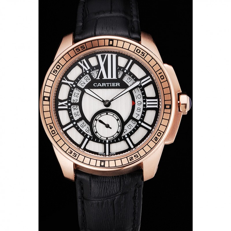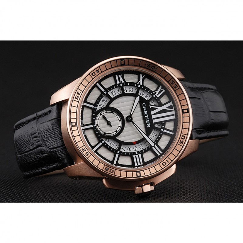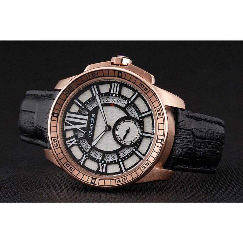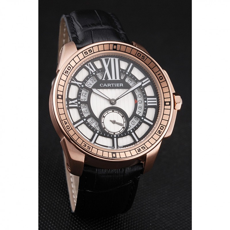Bracelet:chaleur Cartier en relief bracelet en cuir crocodile noir avec rose 18K-plaqué or boucle déployante