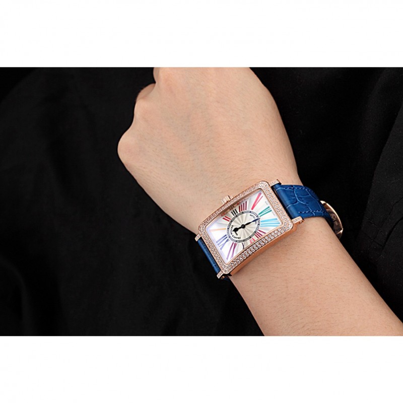 Bracelet:Franck chaleur Muller en relief crocodile bleu bracelet en cuir avec 18k rose-or plaqué fermoir crochet-boucle