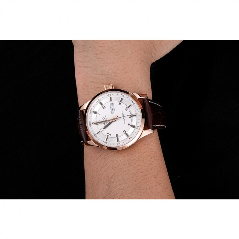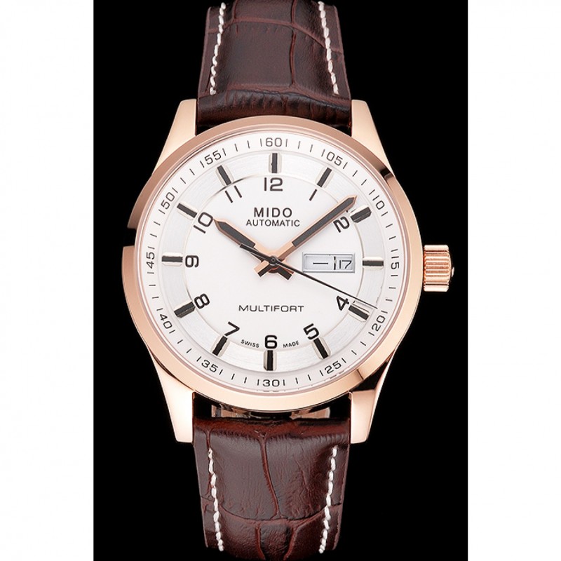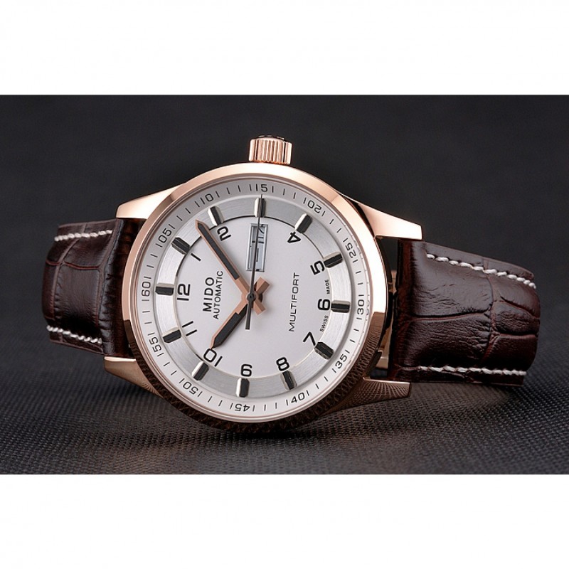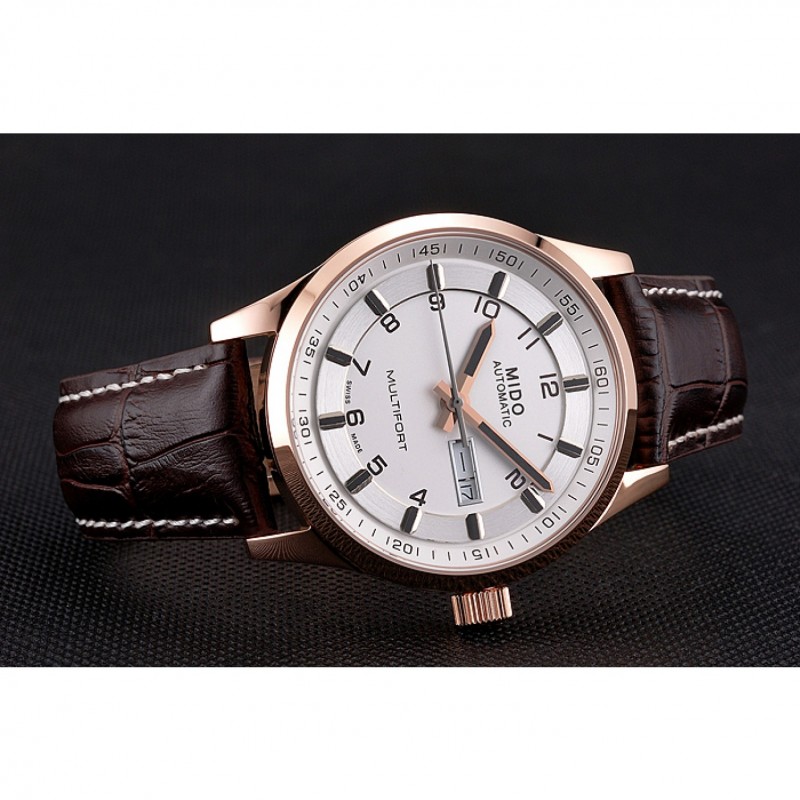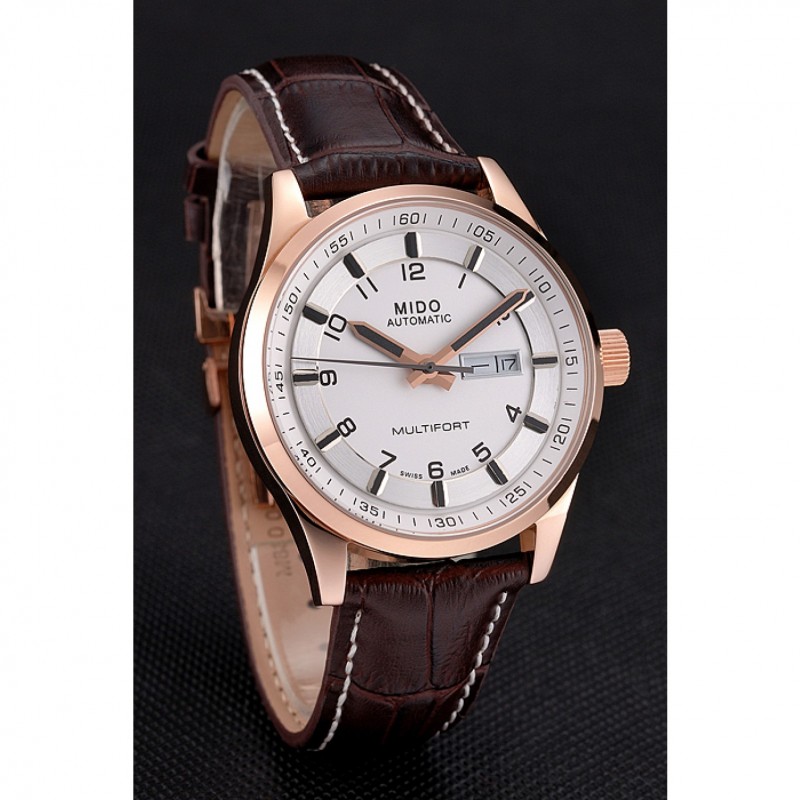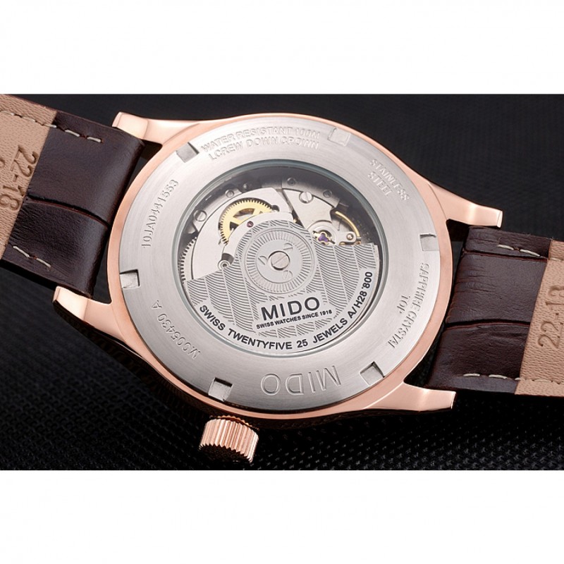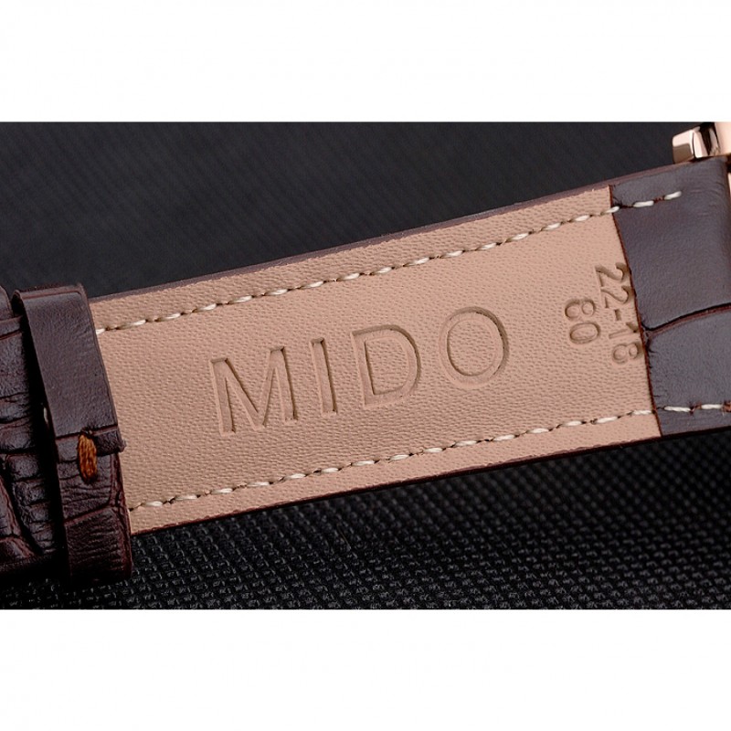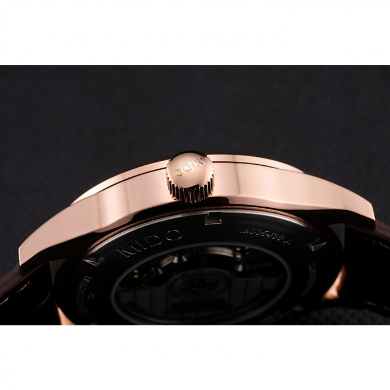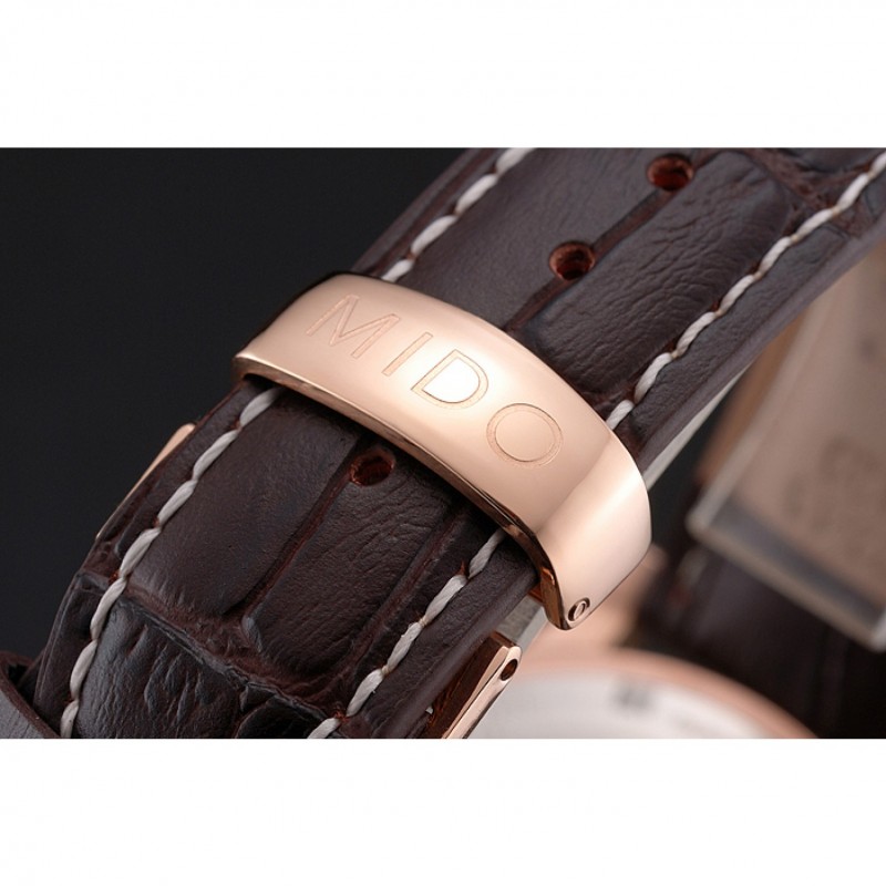 Bracelet:chaleur MIDO bracelet en cuir de crocodile brun relief avec MIDO gravé 18k rose plaqué or fermoir crochet-boucle